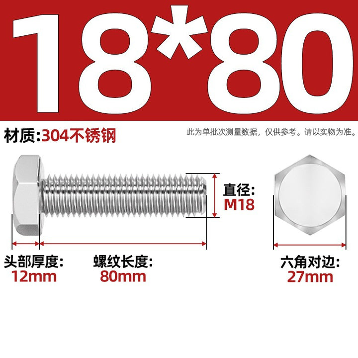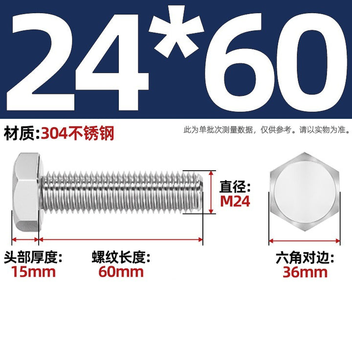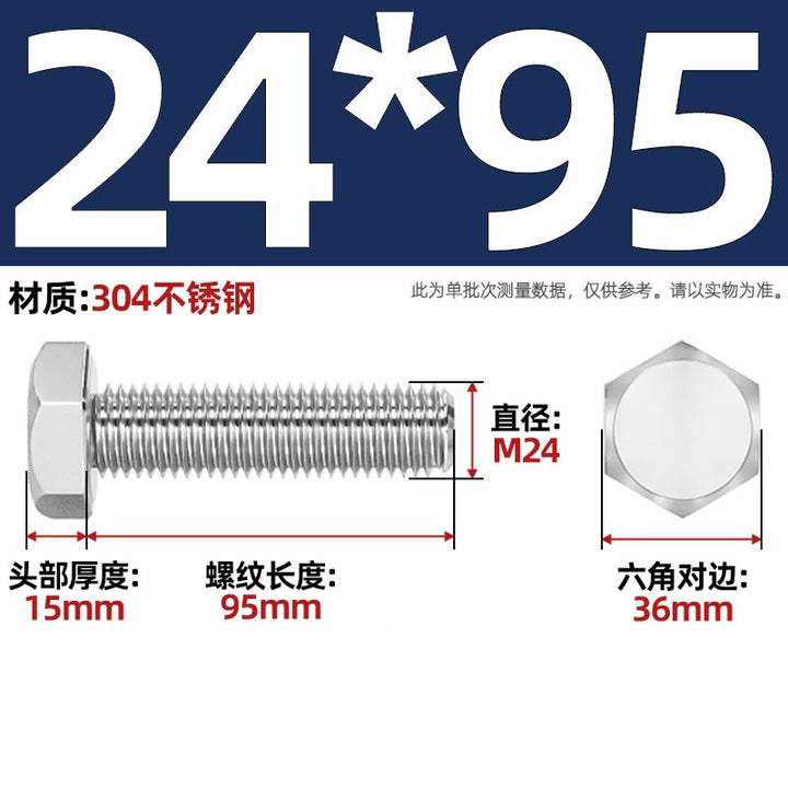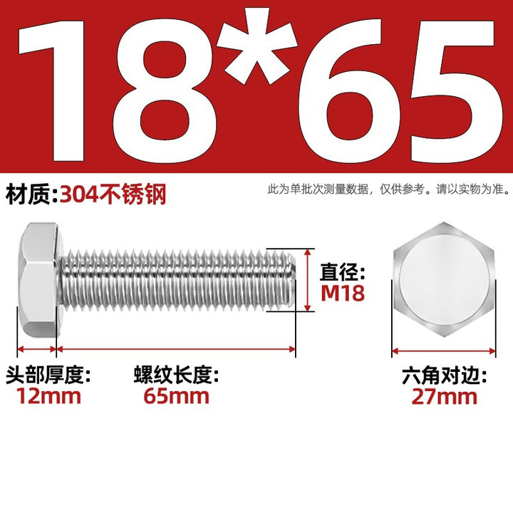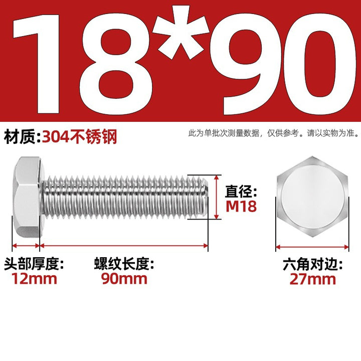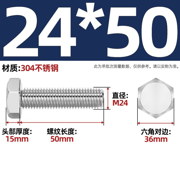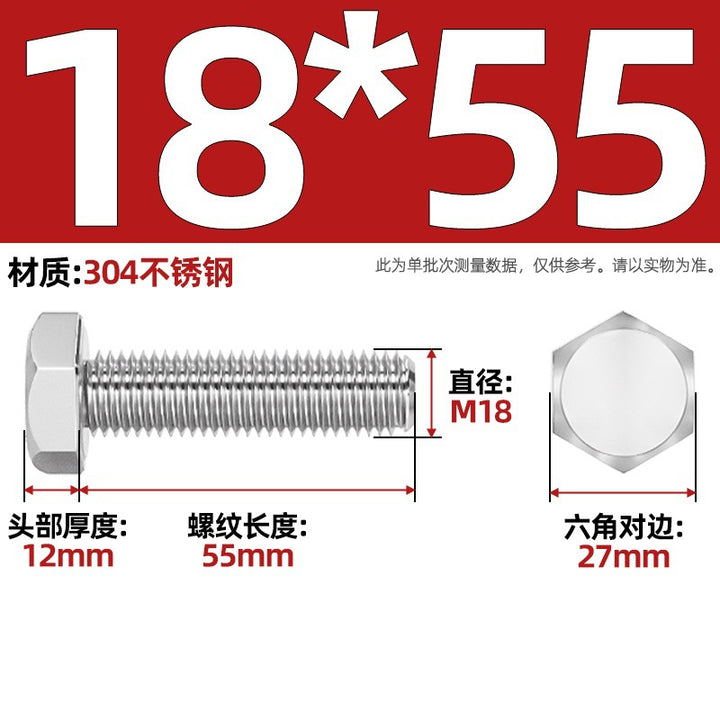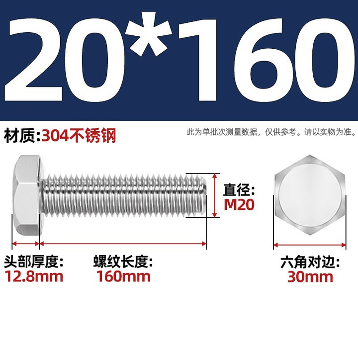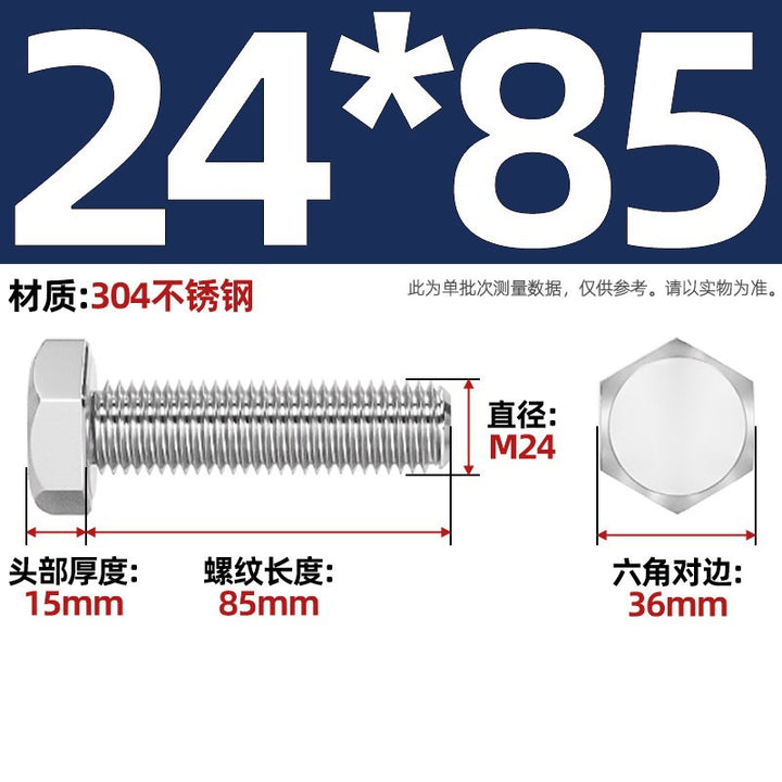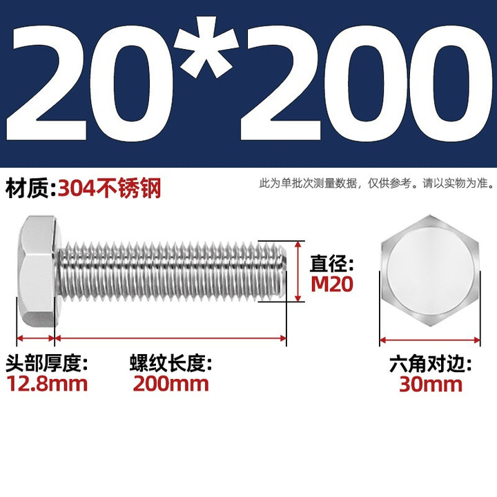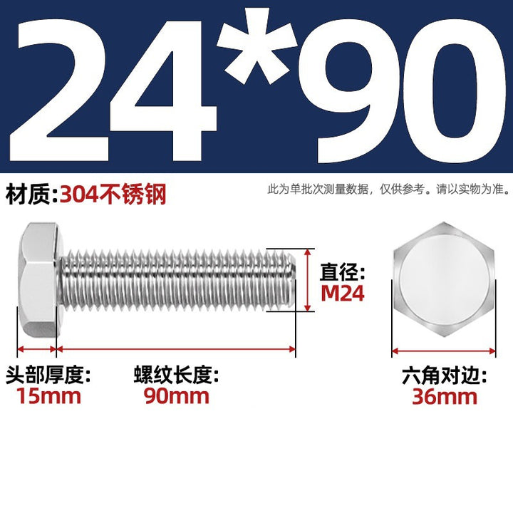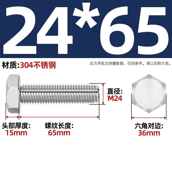 M18-M36 Hexagon Screw 304 Stainless Steel Extended Full Thread Bolt M20M22M24M27M30M33mm