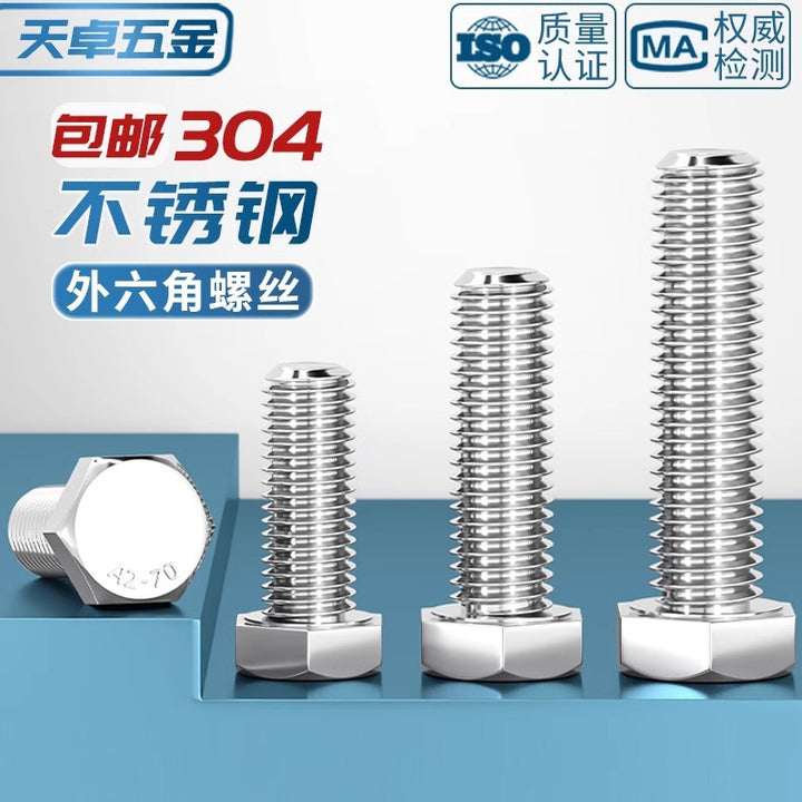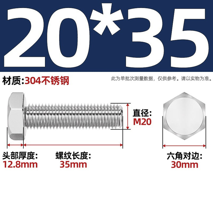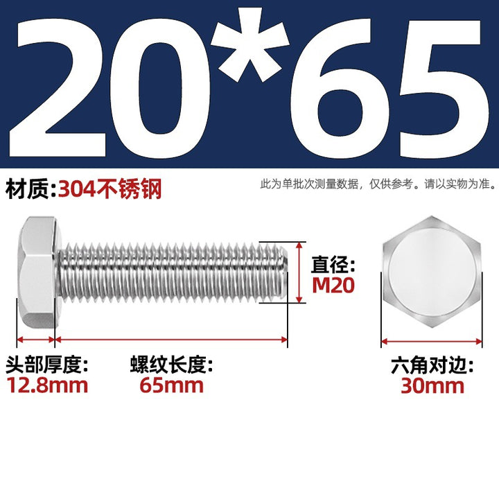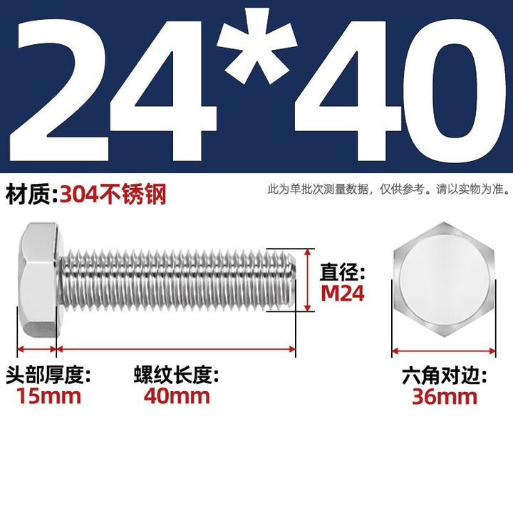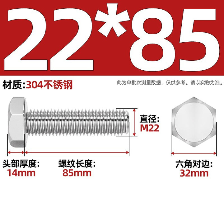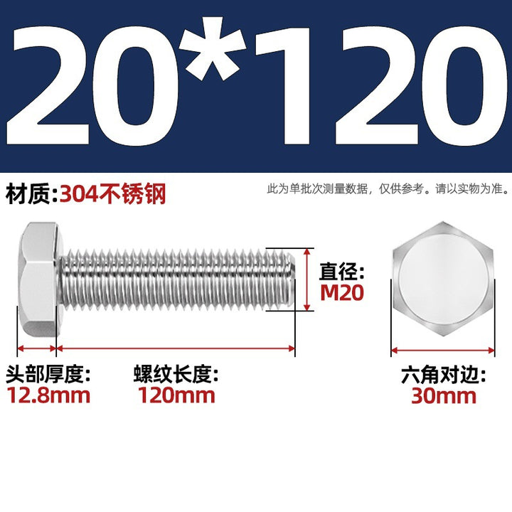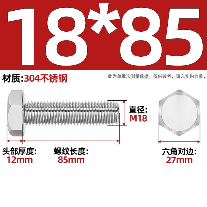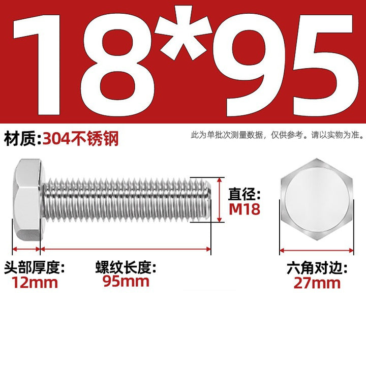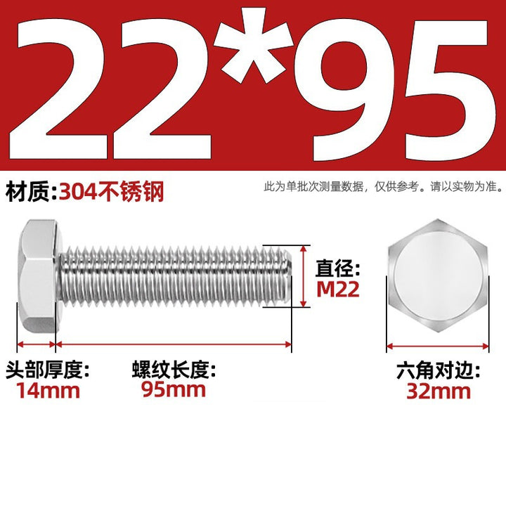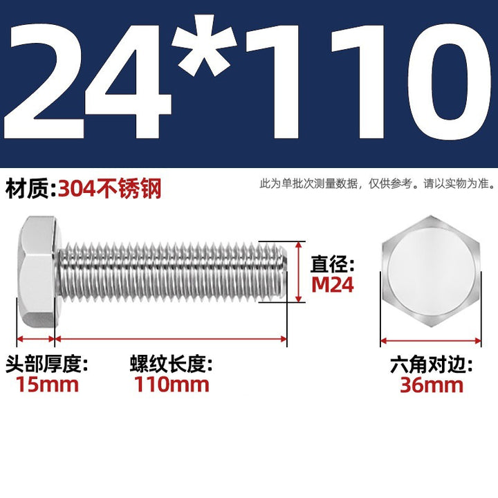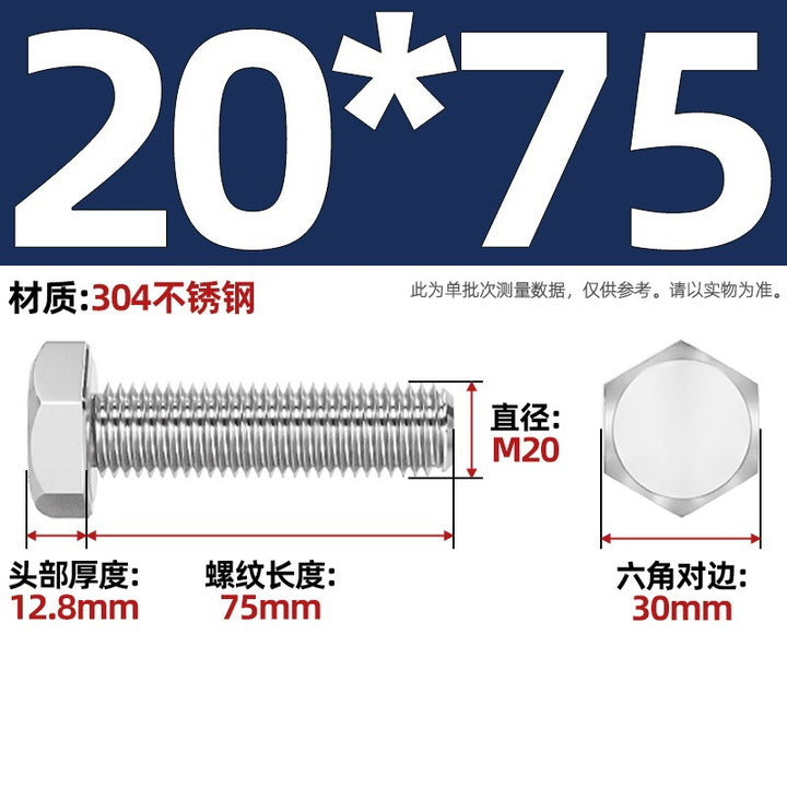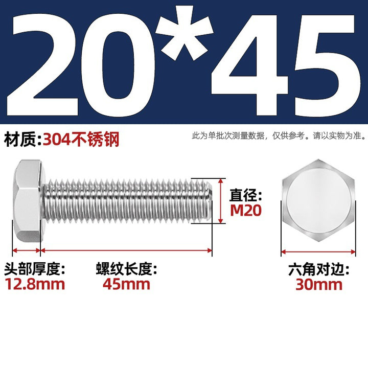 M18-M36 Hexagon Screw 304 Stainless Steel Extended Full Thread Bolt M20M22M24M27M30M33mm