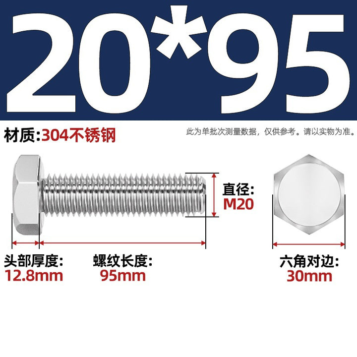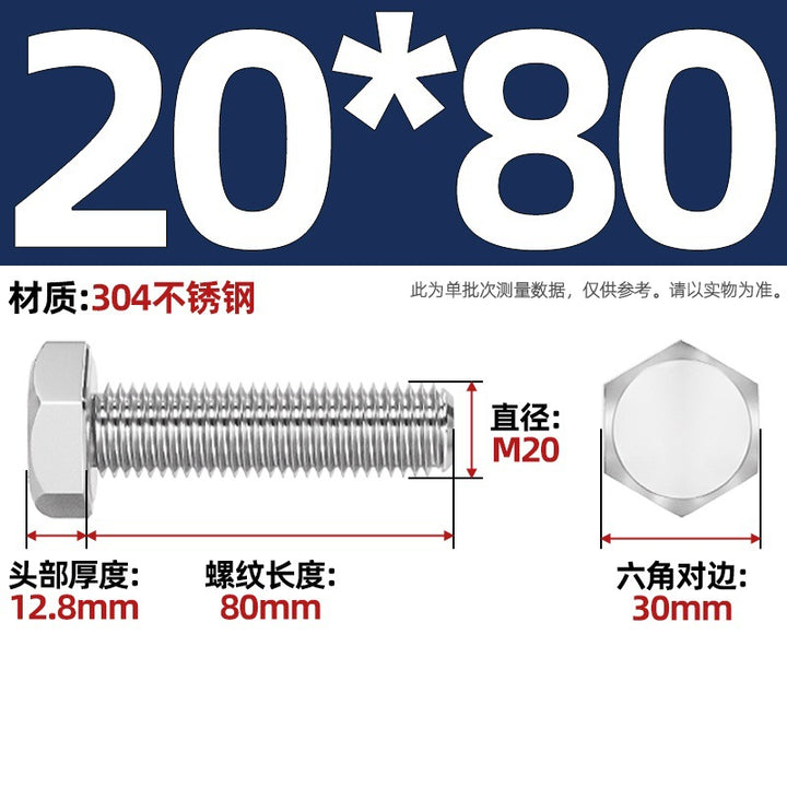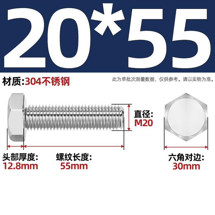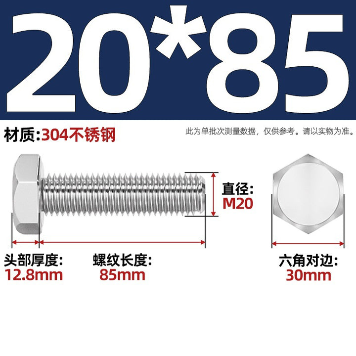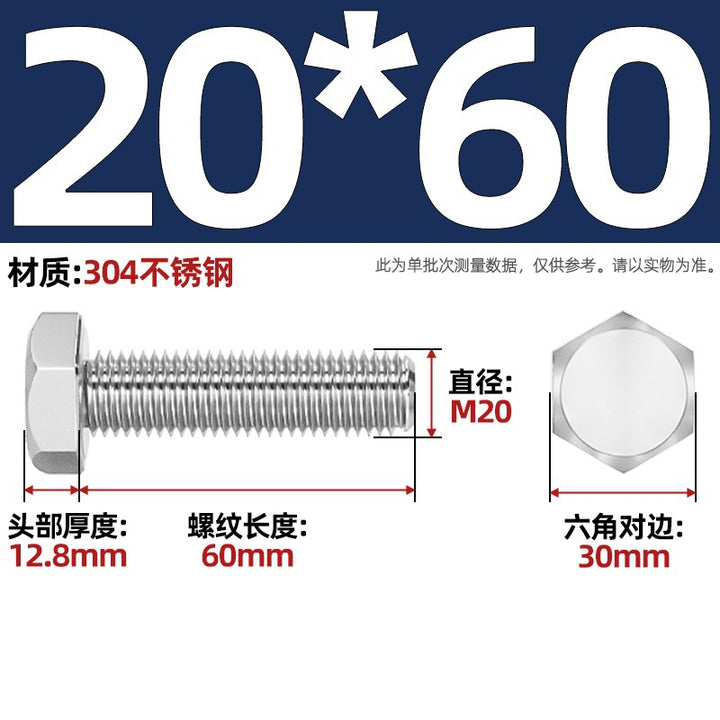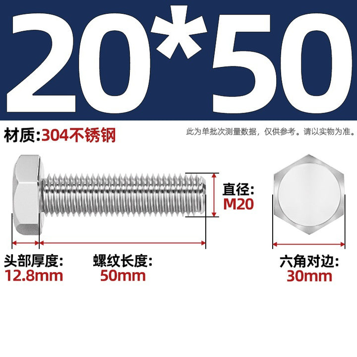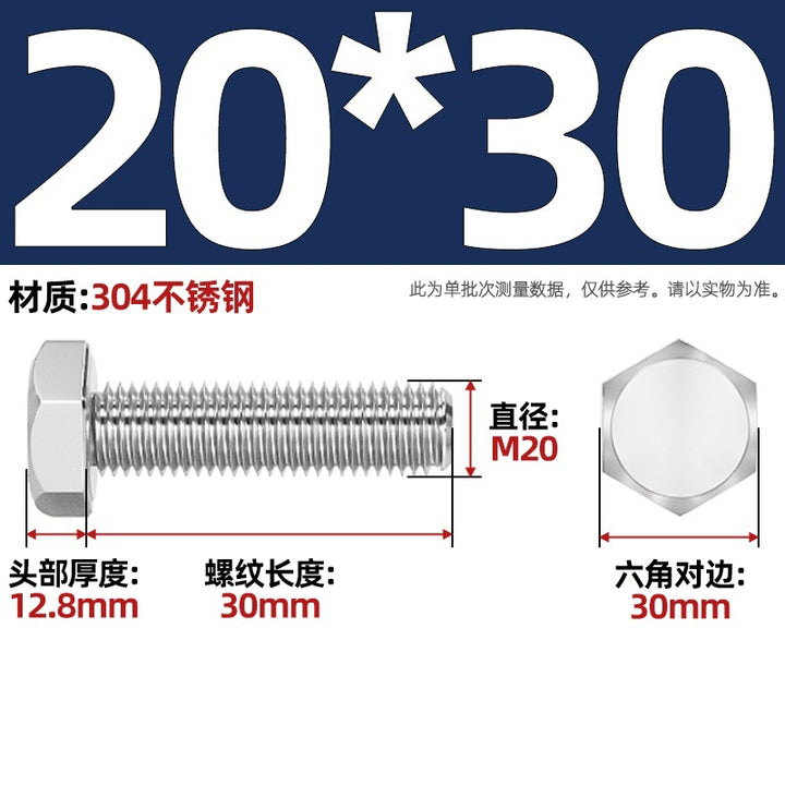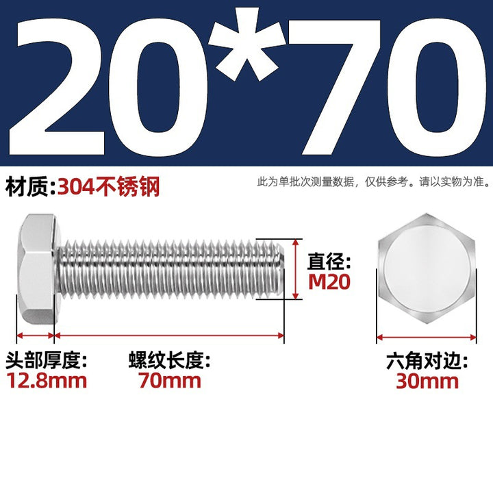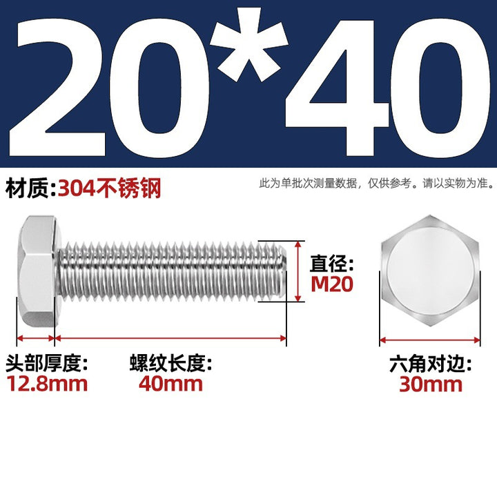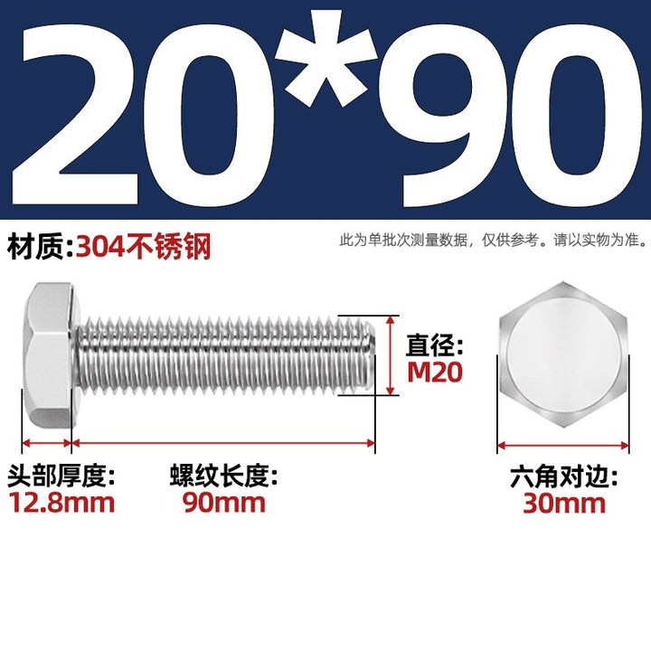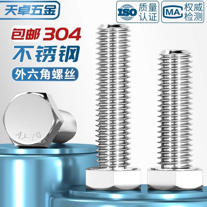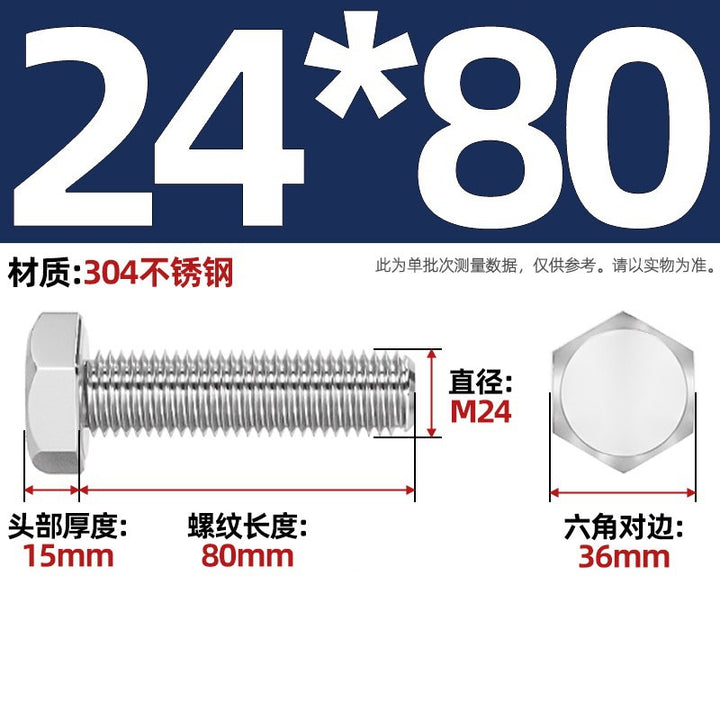 M18-M36 Hexagon Screw 304 Stainless Steel Extended Full Thread Bolt M20M22M24M27M30M33mm