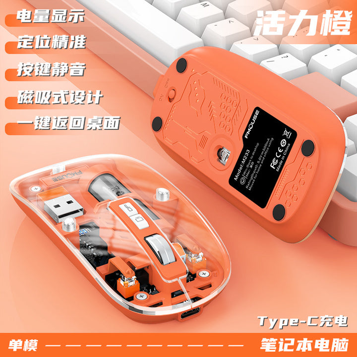 M233 transparent magnetic suction wireless bluetooth three-mode mouse charging silent mouse desktop laptop universal