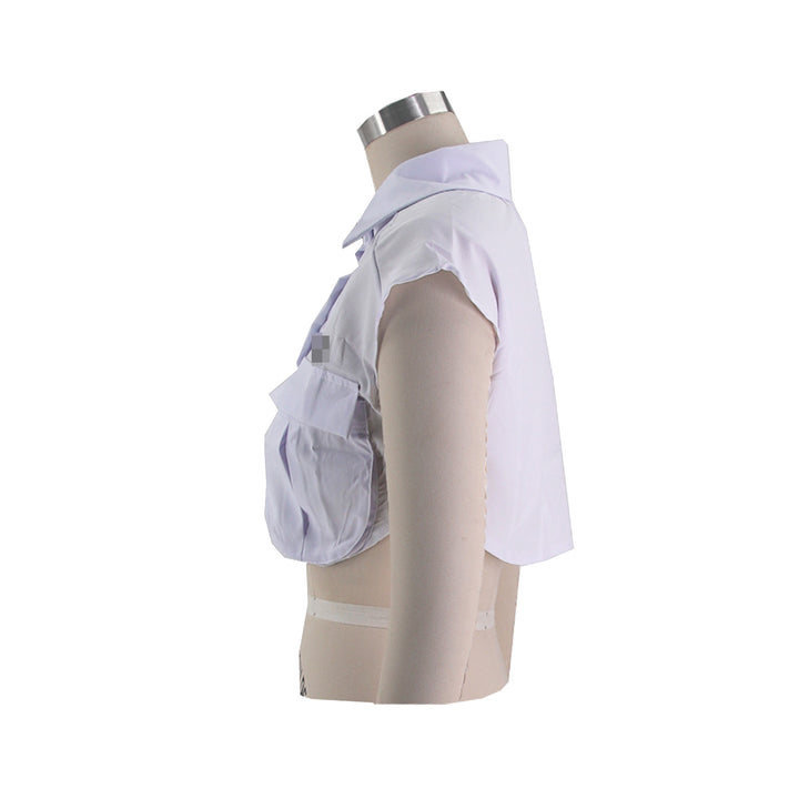 M3020L European and American women's solid color pocket splicing irregular single-breasted cardigan shirt top