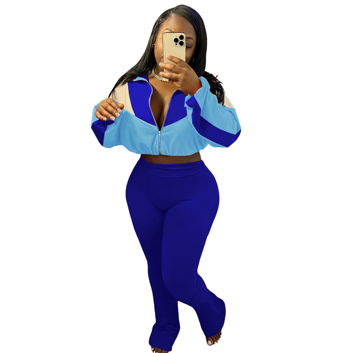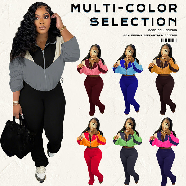 M3073 European and American German velvet suit color matching zipper cardigan leggings sports suit Source