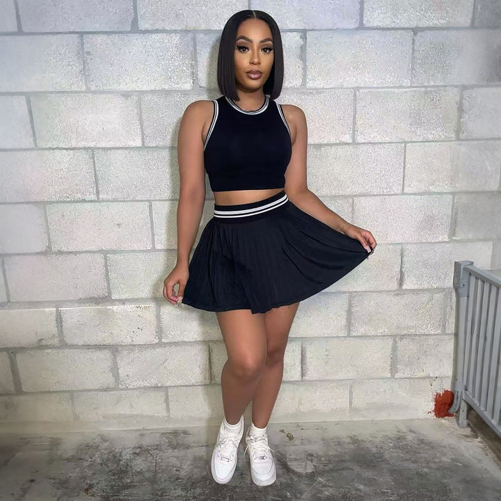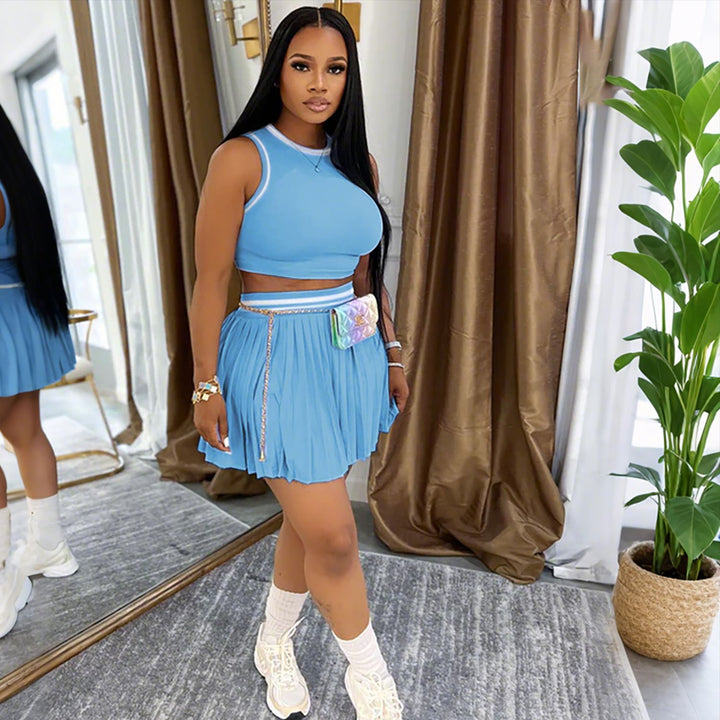 M3089 European and American women's clothing sleeveless short vest casual pleated skirt set