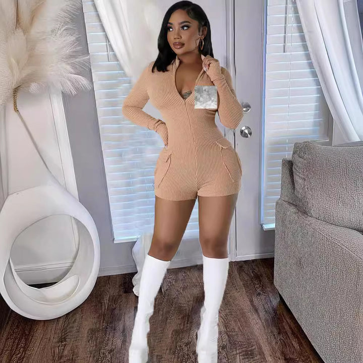 M3127G European and American autumn and winter explosion threaded sexy pocket tight hip shorts jumpsuit