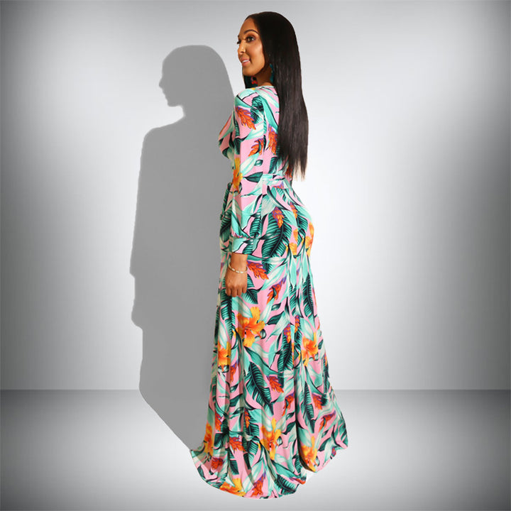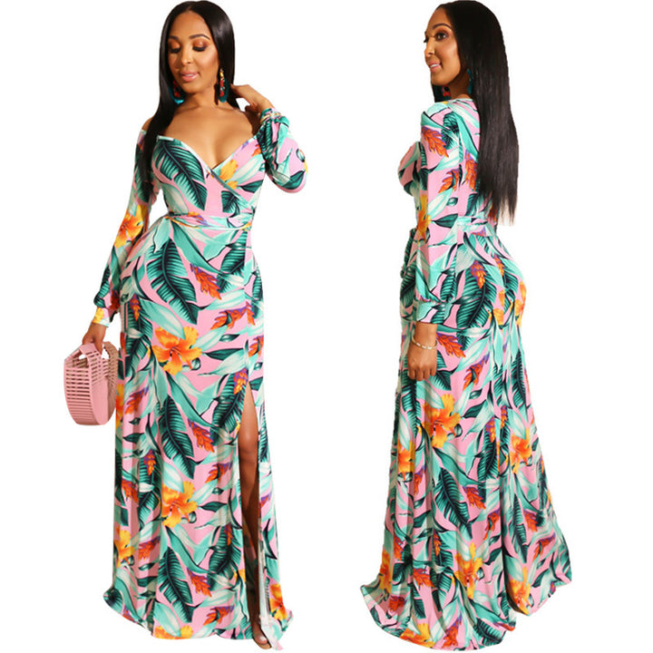 M3212 women's clothing European and American printed split jacket women's spring and autumn floral dress