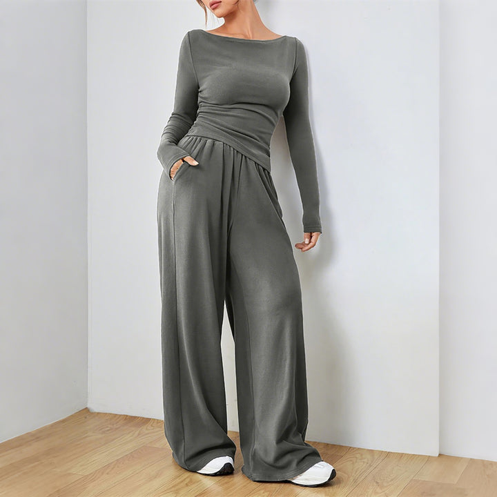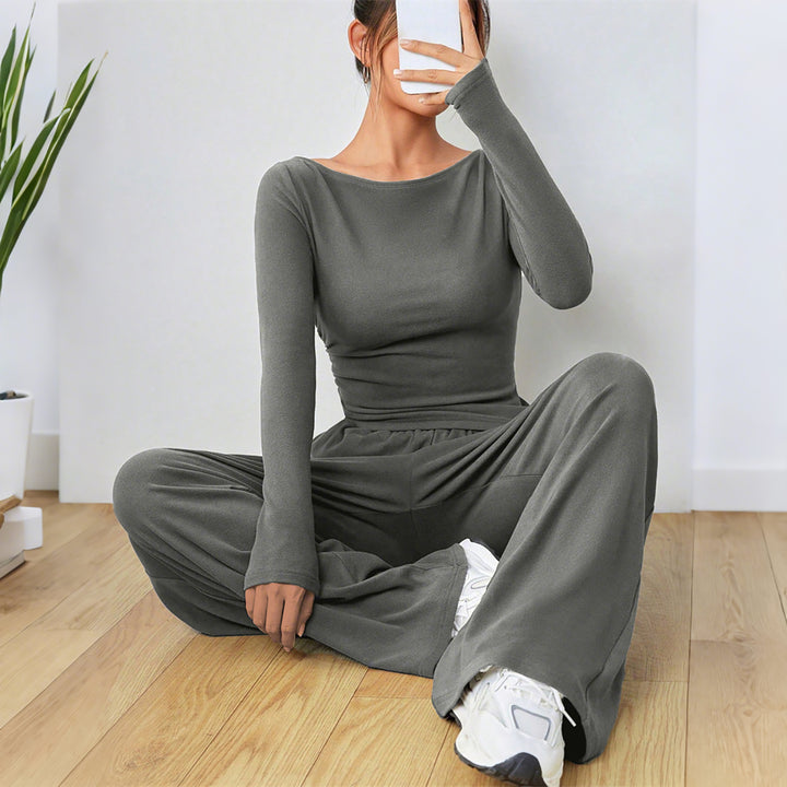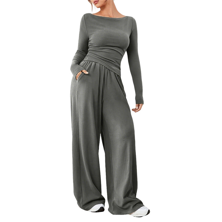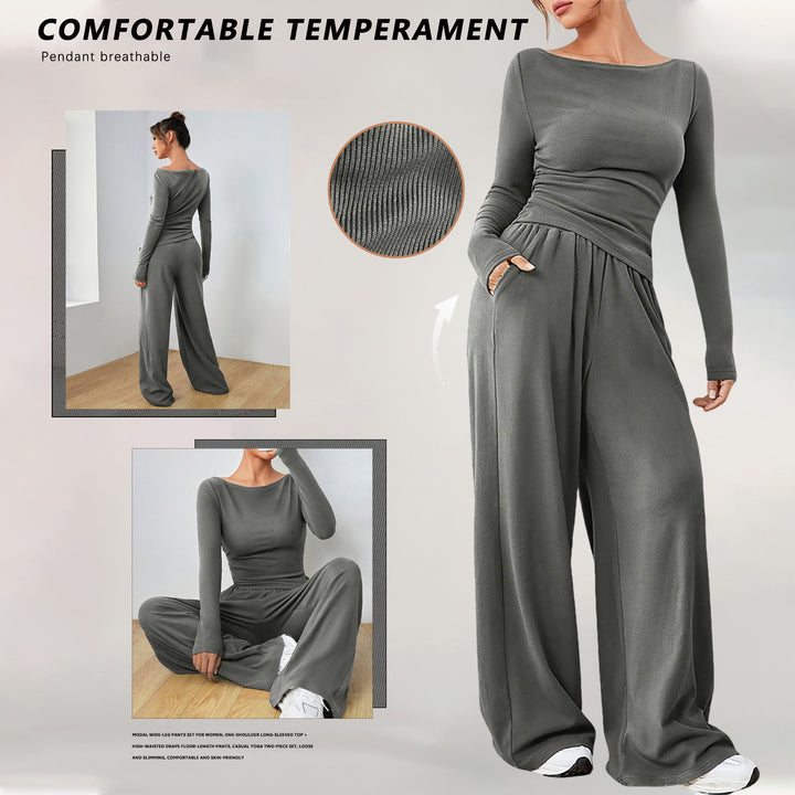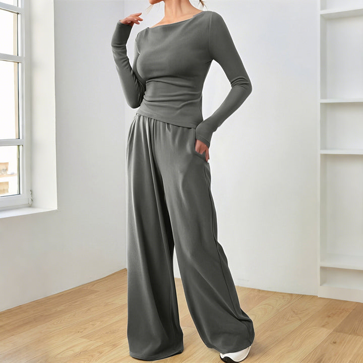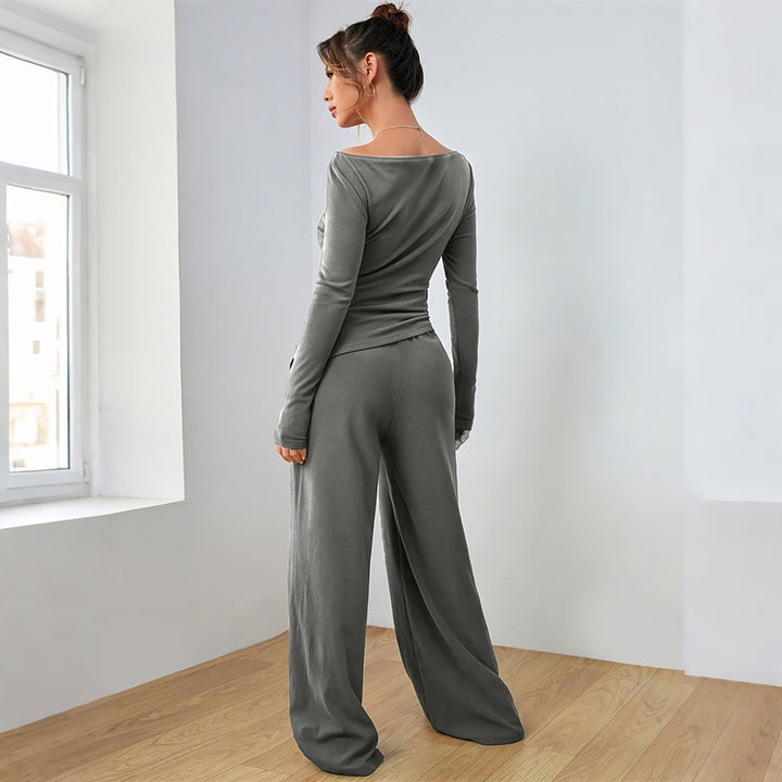 M681 European and American women's clothing casual one-word collar long-sleeved fashionable lazy and thin wide-leg pants set two-piece set