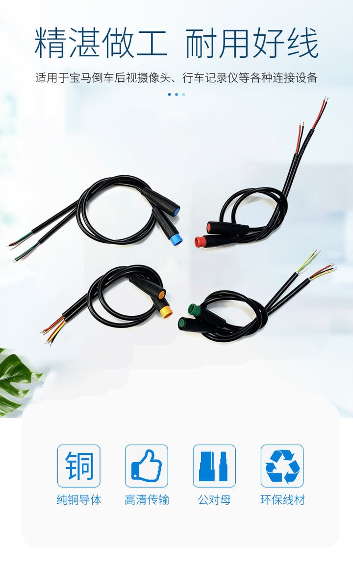 M8 waterproof BMW power cord shared bicycle led outdoor solar 4P male and female signal sensor cable
