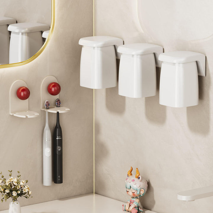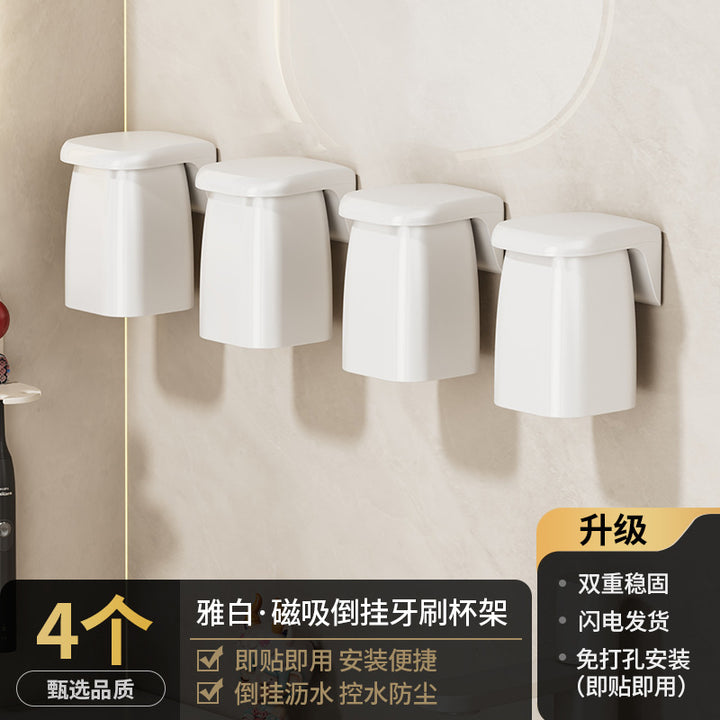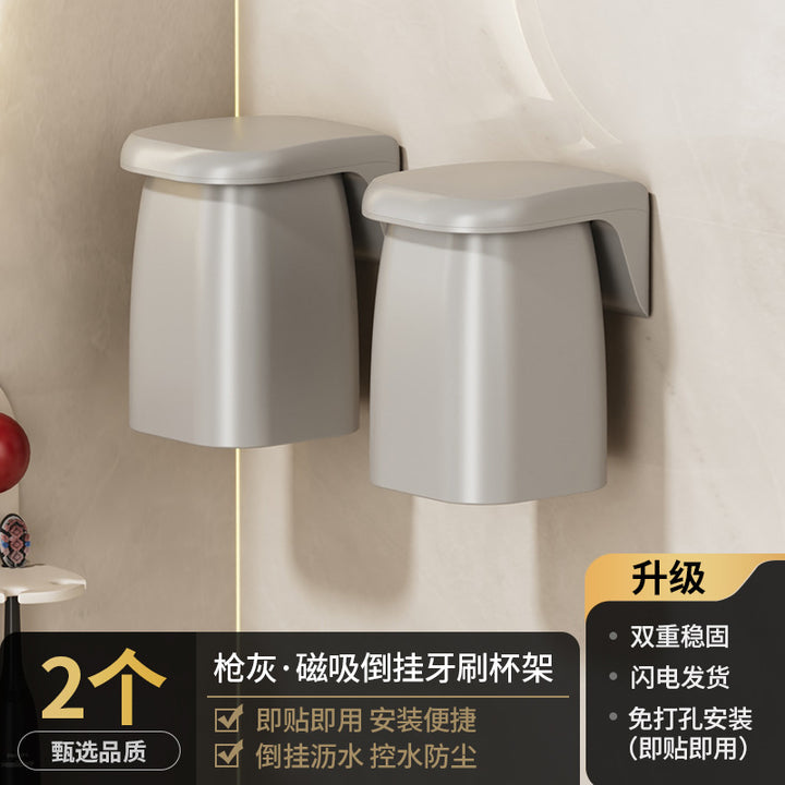 Magnetic mouthwash cup upside down toothbrush cup couple family of three toothbrush cup upside down wall-mounted tooth cylinder cup free of punching