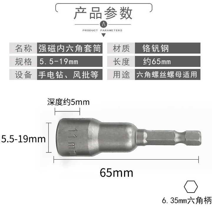 Magnetic sleeve inner hexagonal wind batch sleeve set set electric drill accessories charging drilling wind batch electric screwdriver sleeve