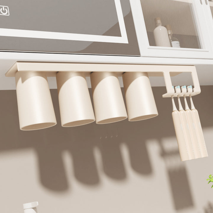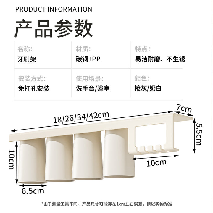 Magnetic suction mouthwash cup at the bottom of the mirror cabinet, a family of four inverted wall-mounted children's washing and brushing cups, to...