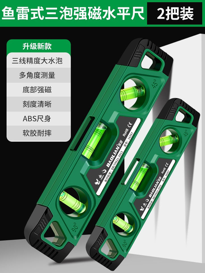 [Upgraded New] Torpedo-type three-bubble strong magnetic level ruler, [Upgraded new model] Torpedo-type three-bubble strong magnetic level ruler * 2 |