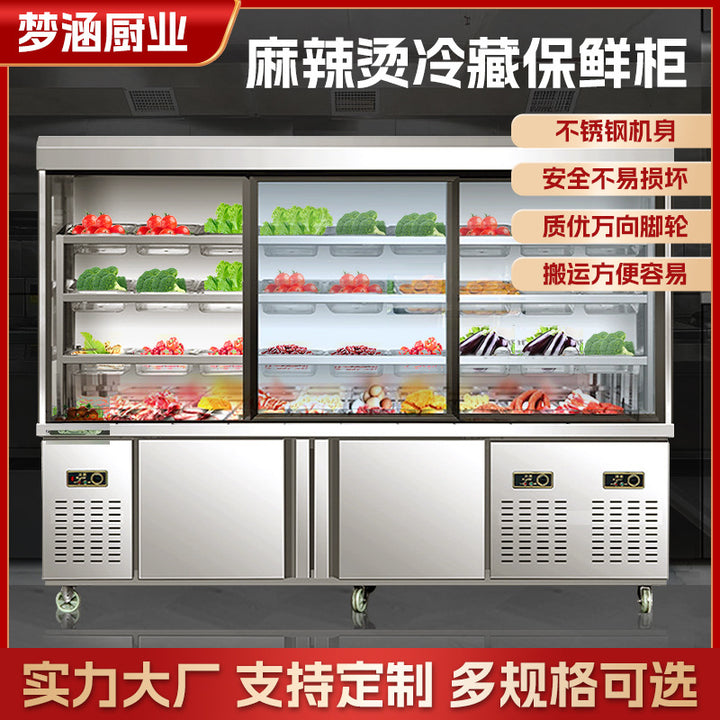 Malatang cabinet, commercial large-capacity refrigerated and fresh-keeping a la carte multi-functional fruit and vegetable string vertical display ...