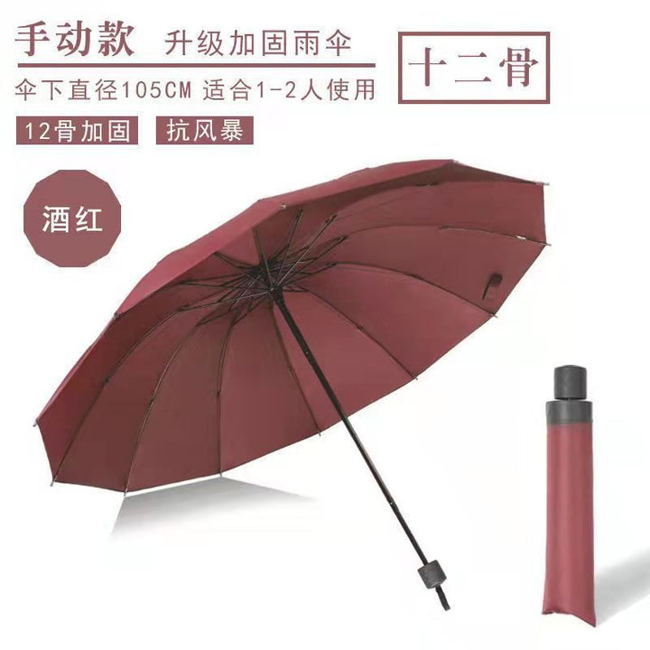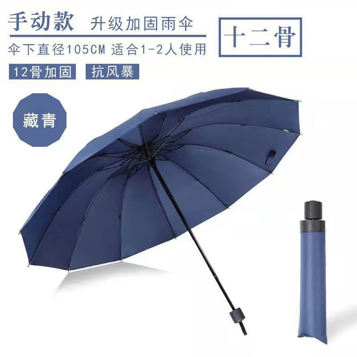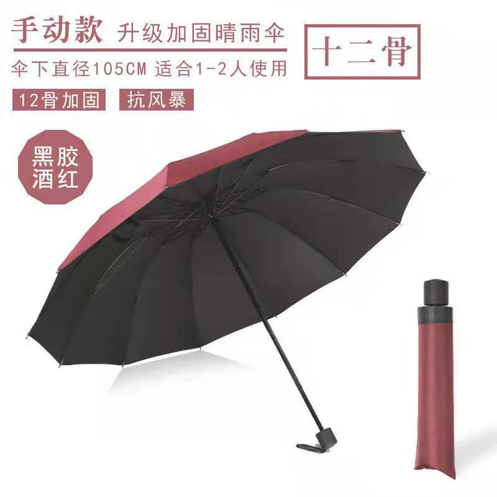Manual oversized 12-bone men's sunscreen sun umbrella, sun and rain dual-purpose three-fold advertising umbrella can print logo