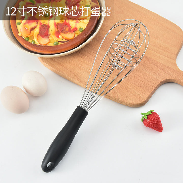 Manual stainless steel rubber handle ball core, egg beater, milk frother, kitchen snack bakin...