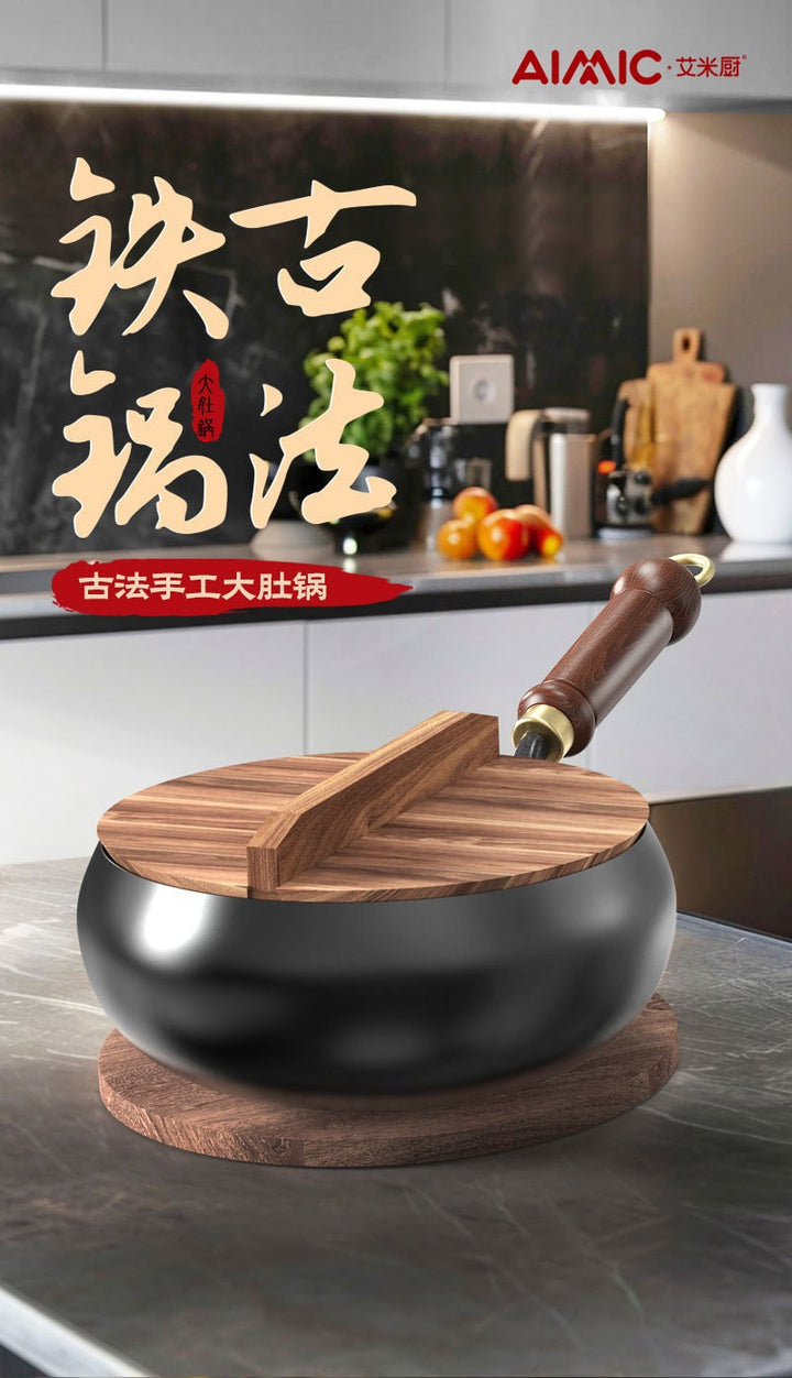 Manufacturer authentic Zhangqiu handmade iron pot big belly pot official flagship store wok h...