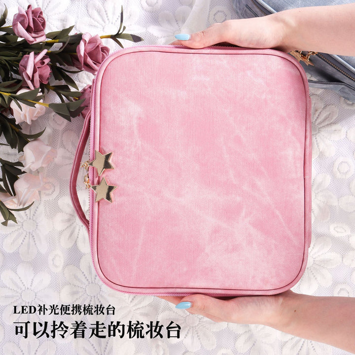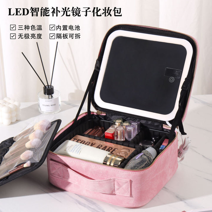 Manufacturer customizes factory source with led light full screen mirror cosmetic bag large capacity cosmetic case portable storage case