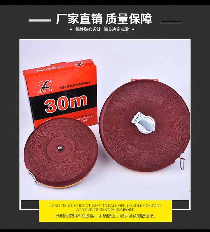 Manufacturer free shipping linen cloth ruler, hand-cranked cloth tape measure, disc 30 meters 50 meters 100 meters red cloth ruler