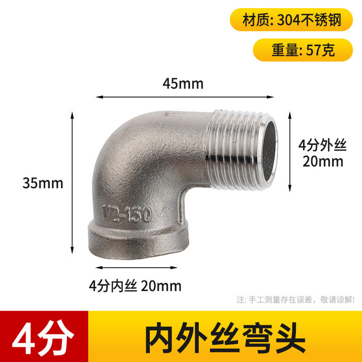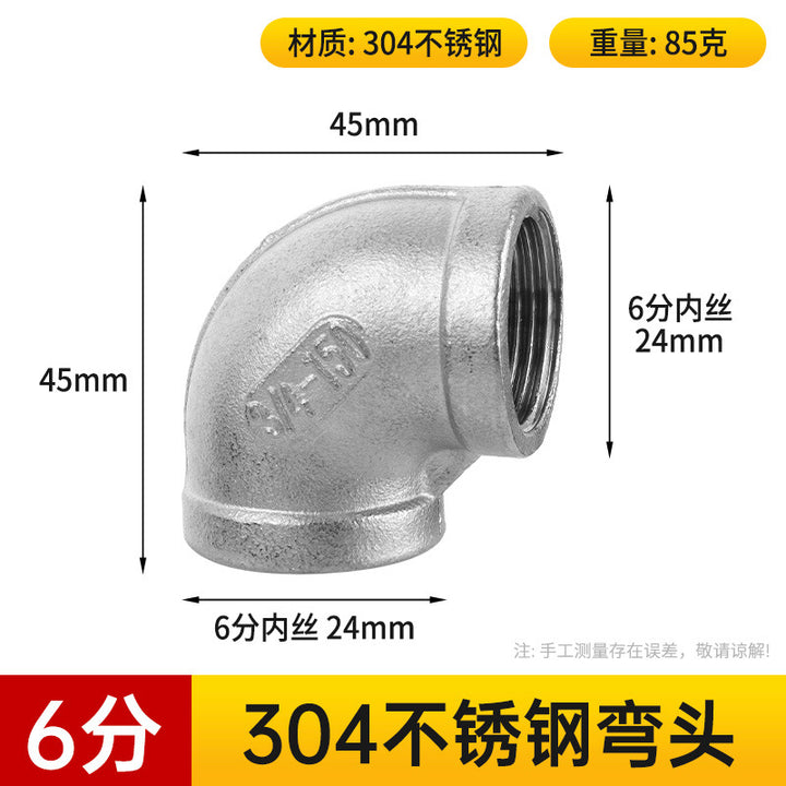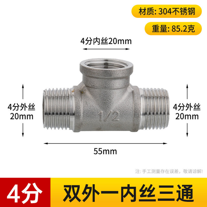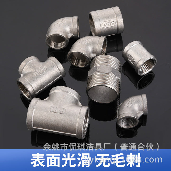 Manufacturer good goods thickened 304 stainless steel pair wire tee elbow plumbing pipe fittings water heater accessories 4 minutes 6 minutes 1 inch