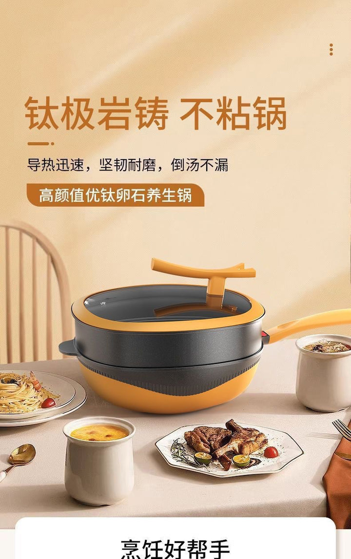 Maibal's new non-stick pan 32cm + lid + steamer + spatula + brush pot cotton |