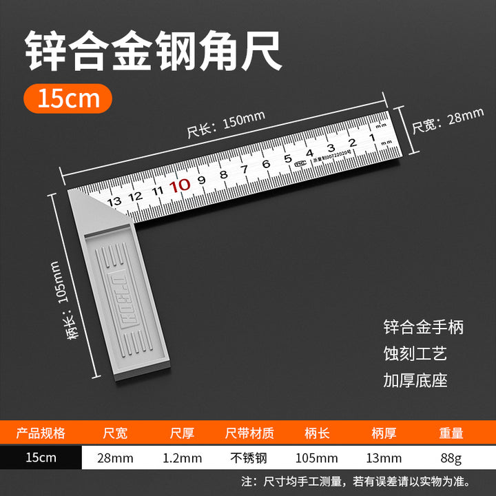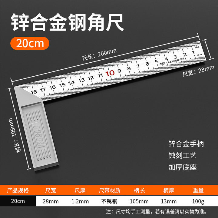 Manufacturer supply stainless steel angle ruler woodworking 90 degree angle ruler triangle ruler 30mm50mm thickened L-shaped square ruler