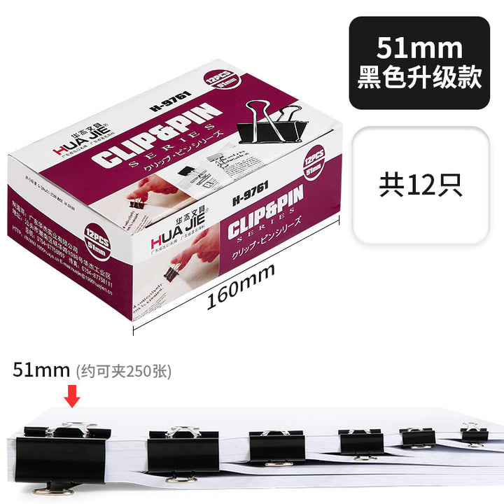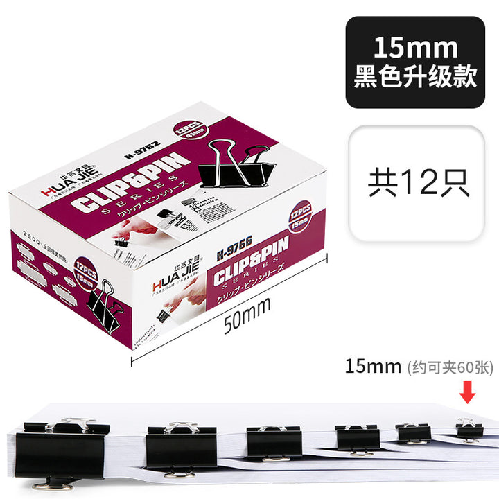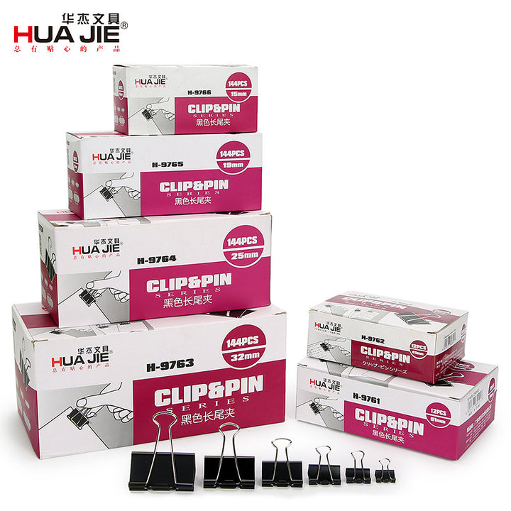 Manufacturer wholesale Huajie black long tail clip anti tail clip bill clip metal swallow tail clip phoenix tail clip office supplies