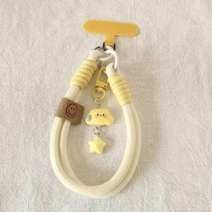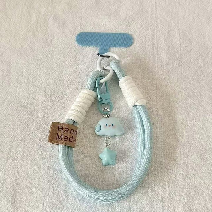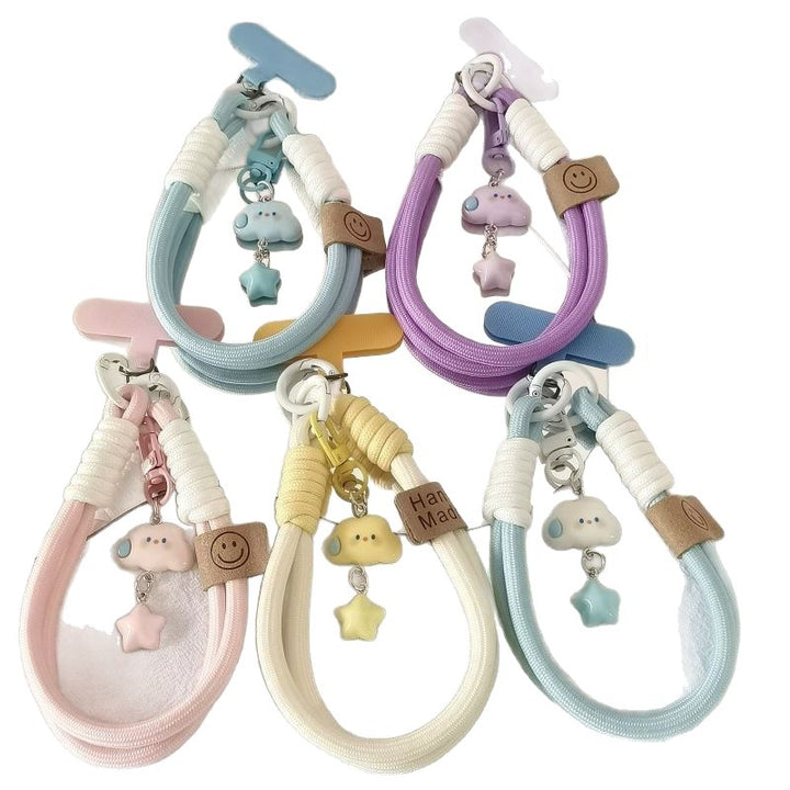 blue and white hand rope + English smiley face + white cloud stars + T blue., Pink white hand rope + English smiley face + pink cloud stars + T pink., White and yellow hand rope + English smiley face + yellow cloud stars + T yellow., Purple and white hand rope + English smiley face + purple cloud stars + T purple., blue and white hand rope + English smiley face + blue cloud stars + T blue |