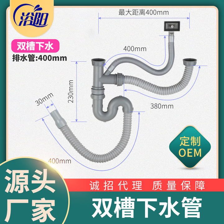 Manufacturer wholesale kitchen washing basin sewer pipe, sink double sink stainless steel sew...