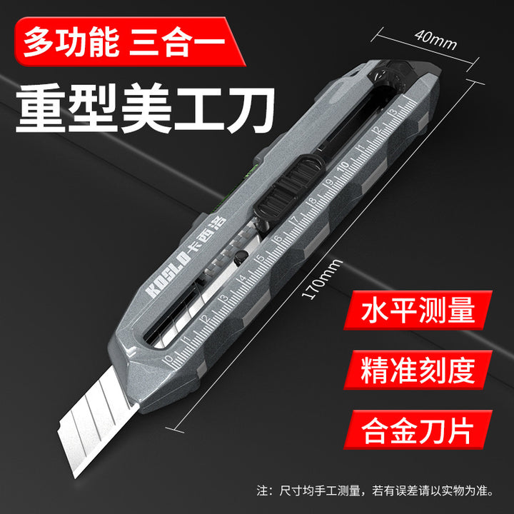 Manufacturer wholesale multi-function three-in-one Internet celebrity integrated heavy-duty utility knife belt horizontal measurement industrial gr...