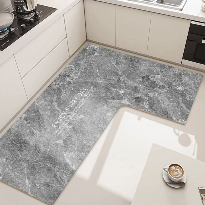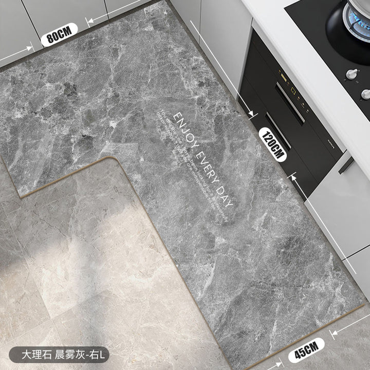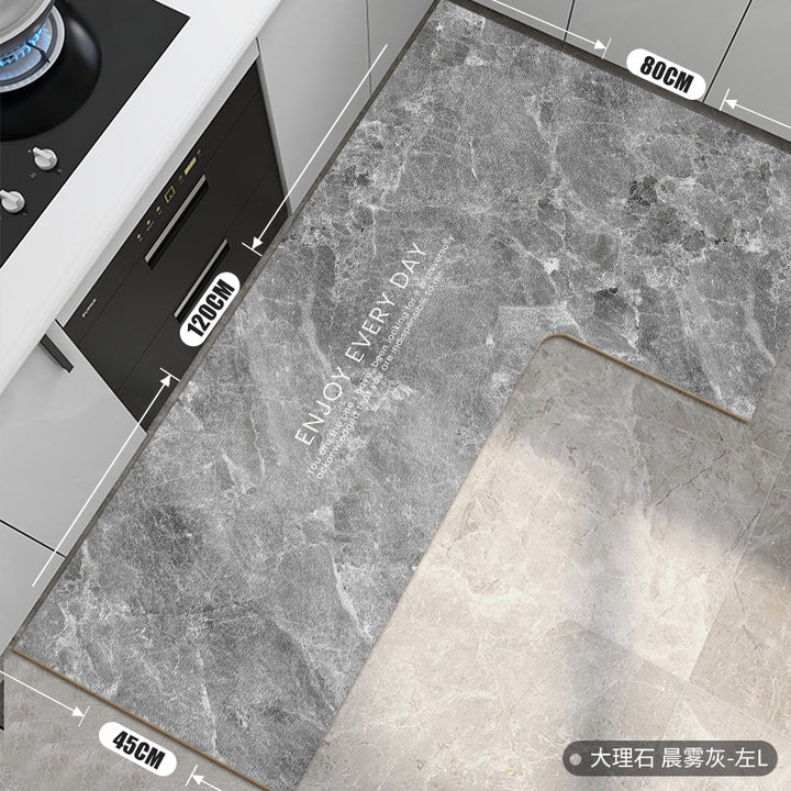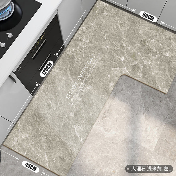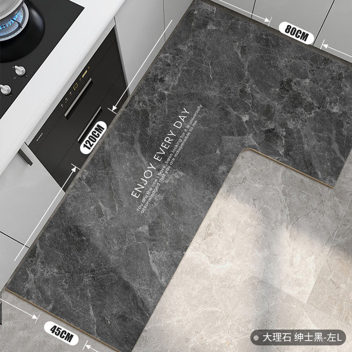 Marble pattern kitchen special floor mat non-slip and oil-proof wipe-in carpet L-shaped floor mat dirt-resistant foot mat