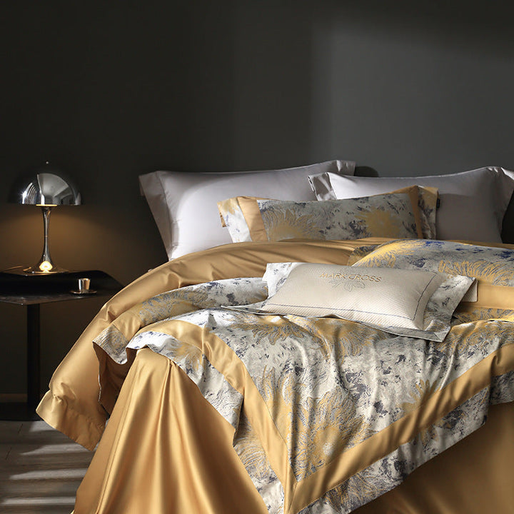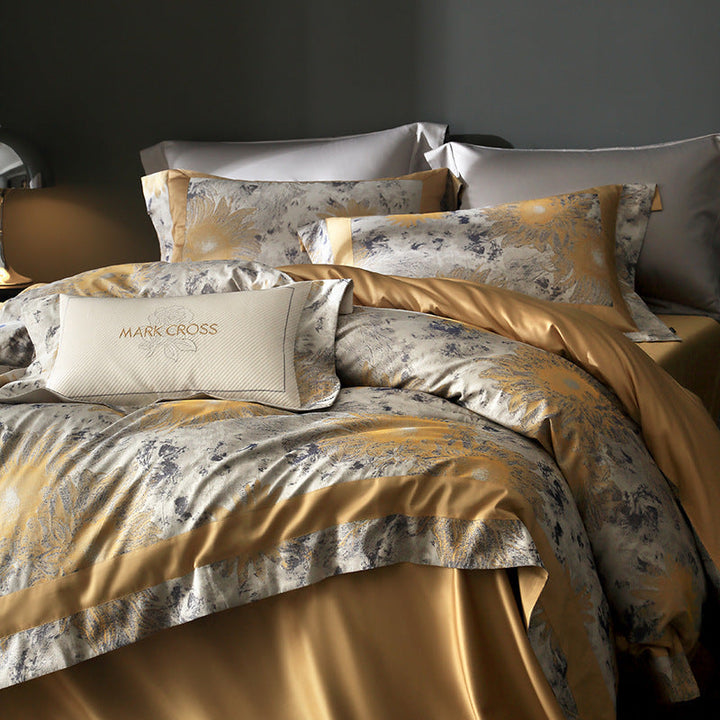 MARKCROSS Top Luxury Artist Yarn-dyed Jacquard Four-piece Skin-friendly Naked Sleeping Horse Cotton Bedding