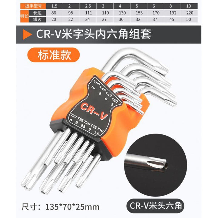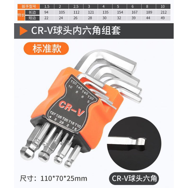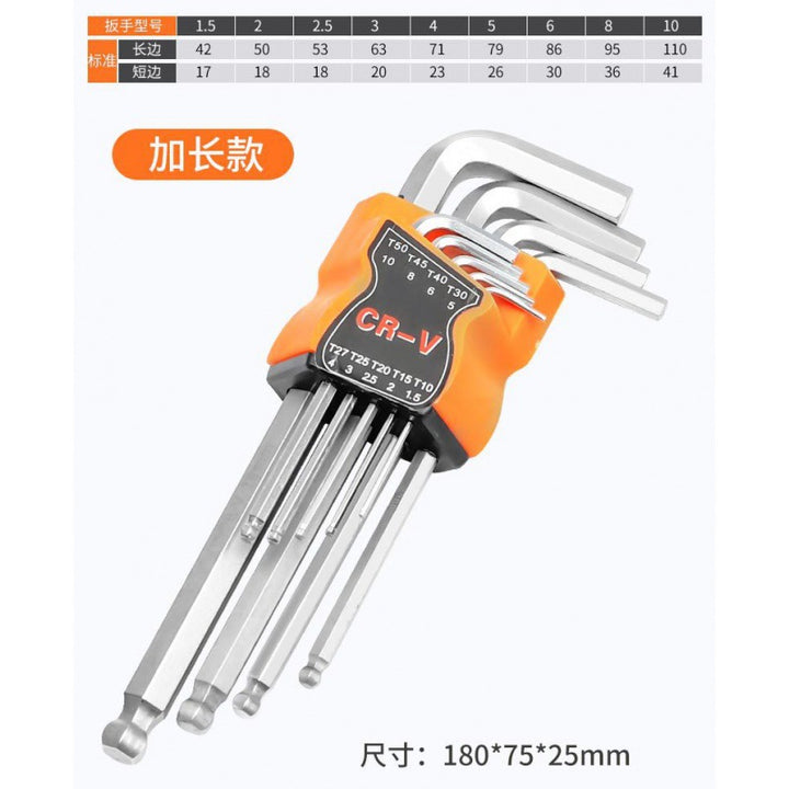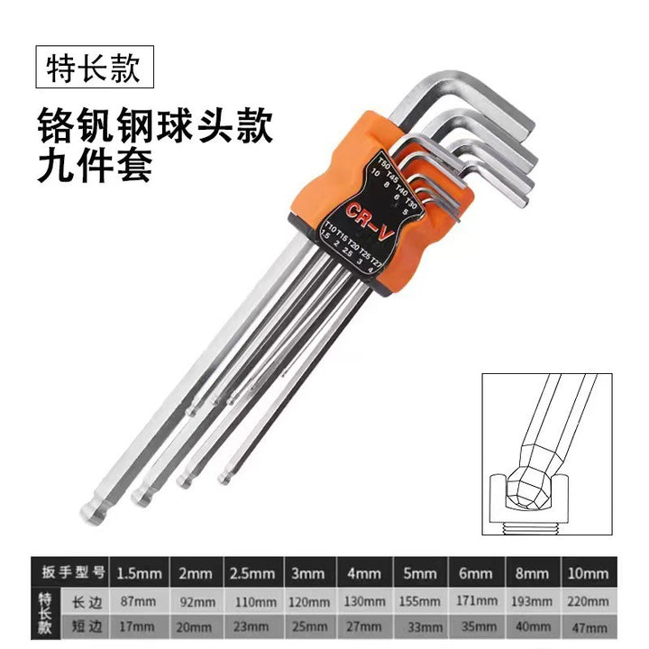 Matt hexagonal wrench 9-piece set Flat head ball head hexagonal hardware tools, plum blossom hexagonal wrench