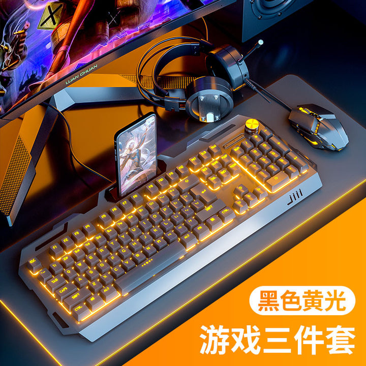 Mechanical feel keyboard, mouse, earphones, three-piece set, special for e-sports games, high-value laptop, desktop outside