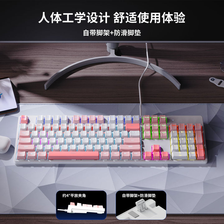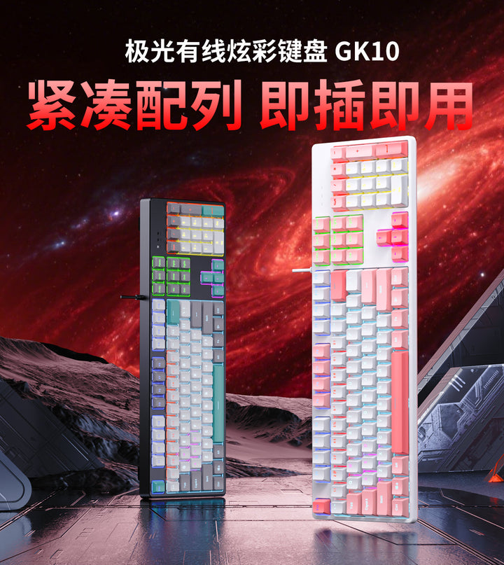 Mechanical keyboard wired 104 keys Aurora green black tea shaft desktop computer notebook e-sports game dedicated