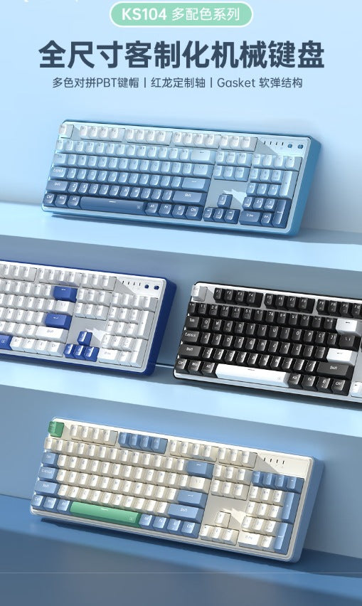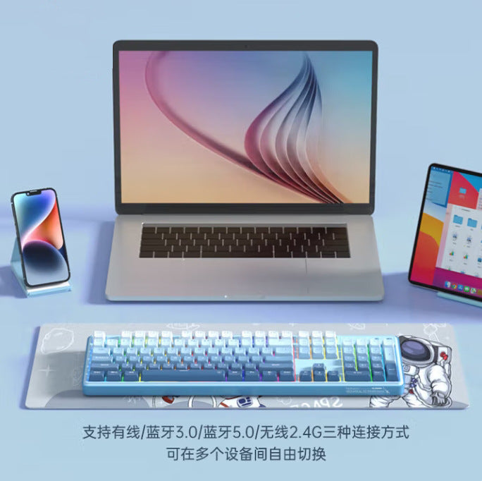 Mechanical keyboard, wired keyboard, full-key hot-swappable PBT keycaps, full-key no-punch 10...