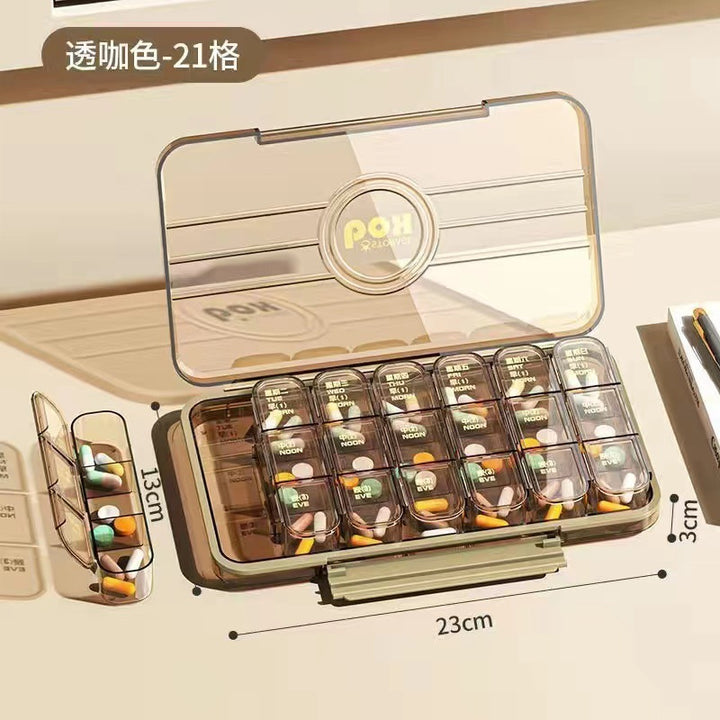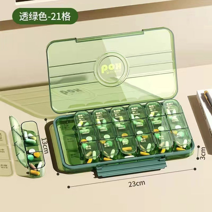 Medicine box, portable portable medicine dispensing box seven days a week, three meals a day dispenser, large-capacity tablet storage box
