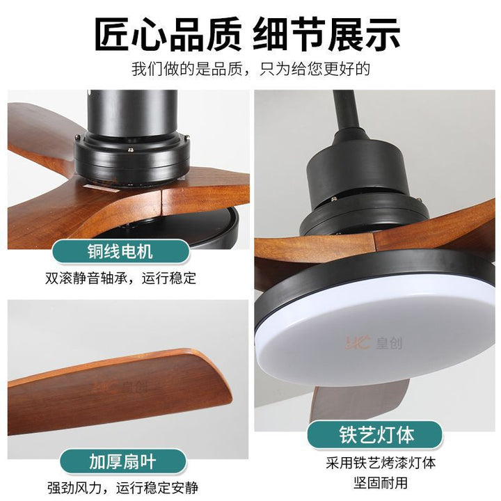 Medieval ceiling fan light glue leaf frequency conversion intelligent silent fan light dining room living room main light bedroom soft wind fan light