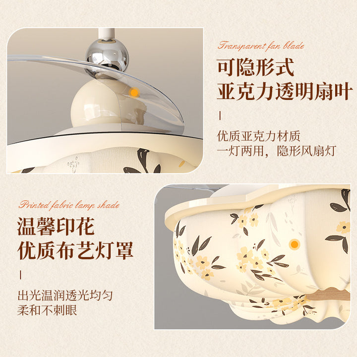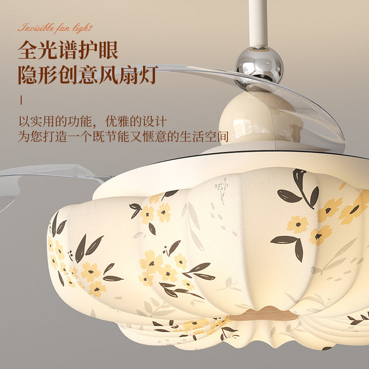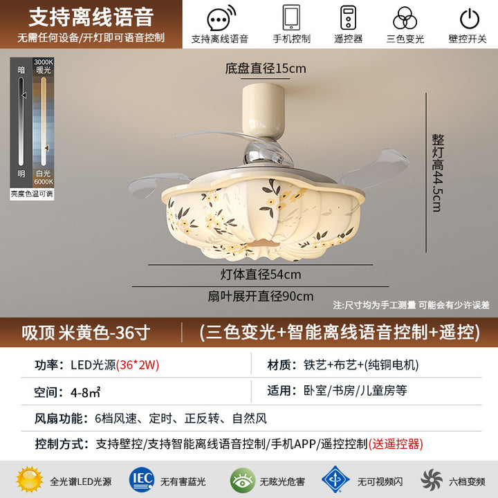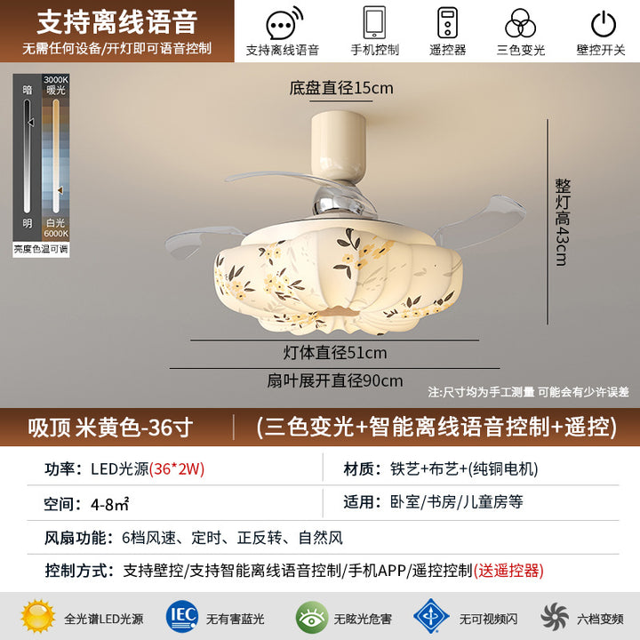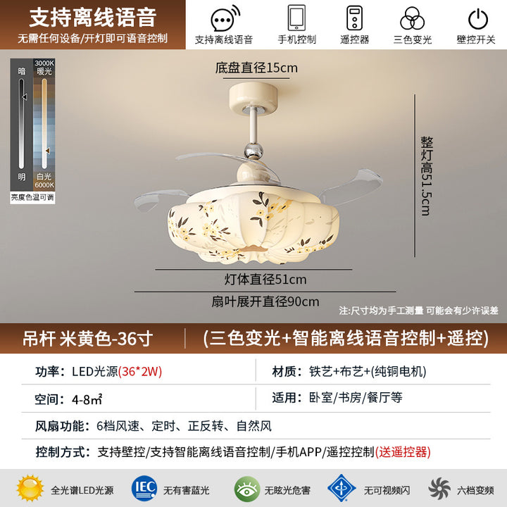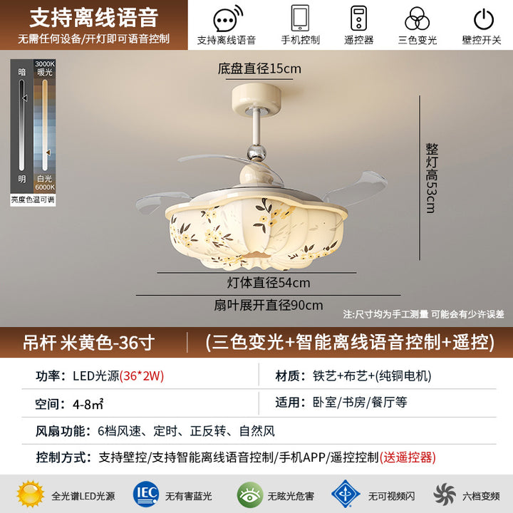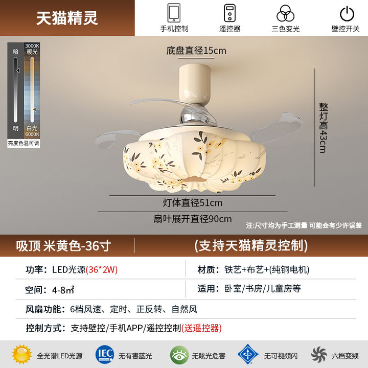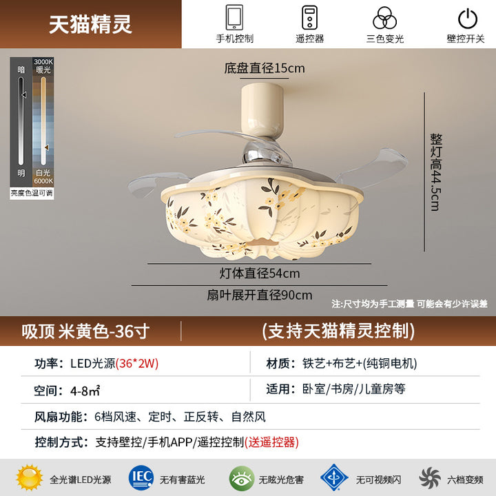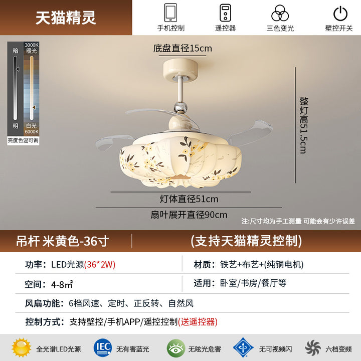 Medieval fabric fan light, ceiling fan light, bedroom study, Song-style aesthetics, advanced sense, invisible fan integrated lamp