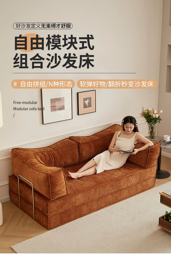 Medieval fabric sofa module small apartment living room double triple straight row retro folding dual-purpose pudding sofa bed