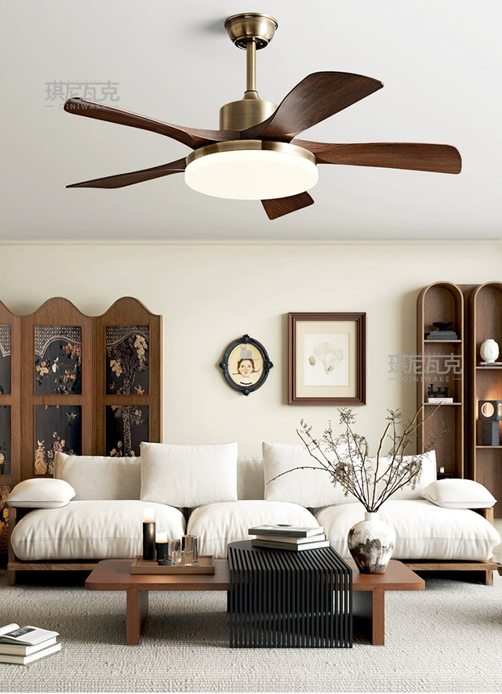 Medieval fan light 2025 new atmospheric retro ceiling fan light living room dining room walnu...