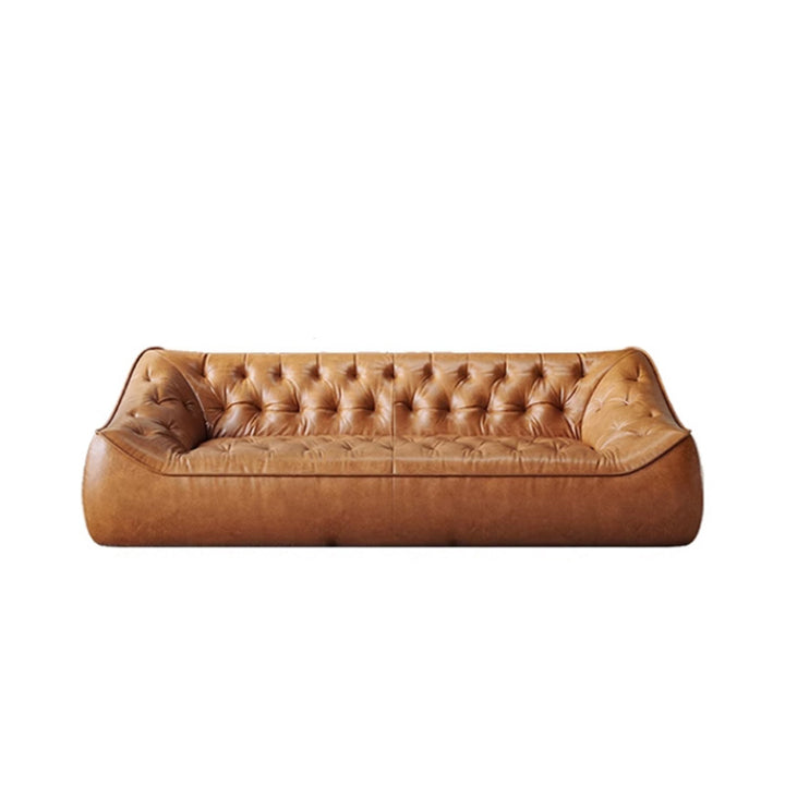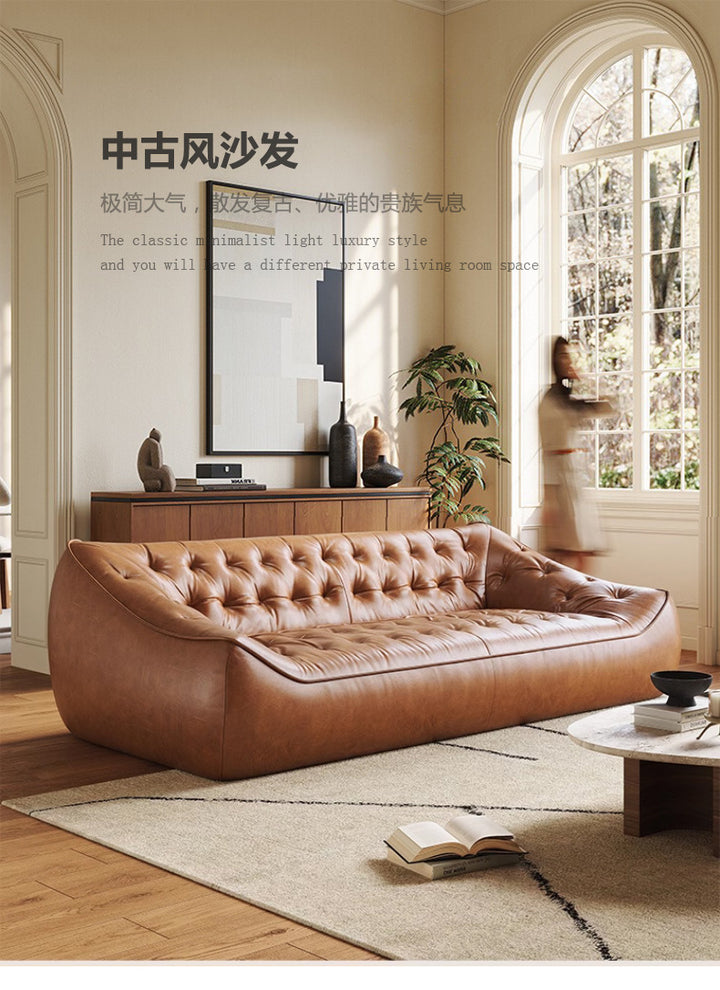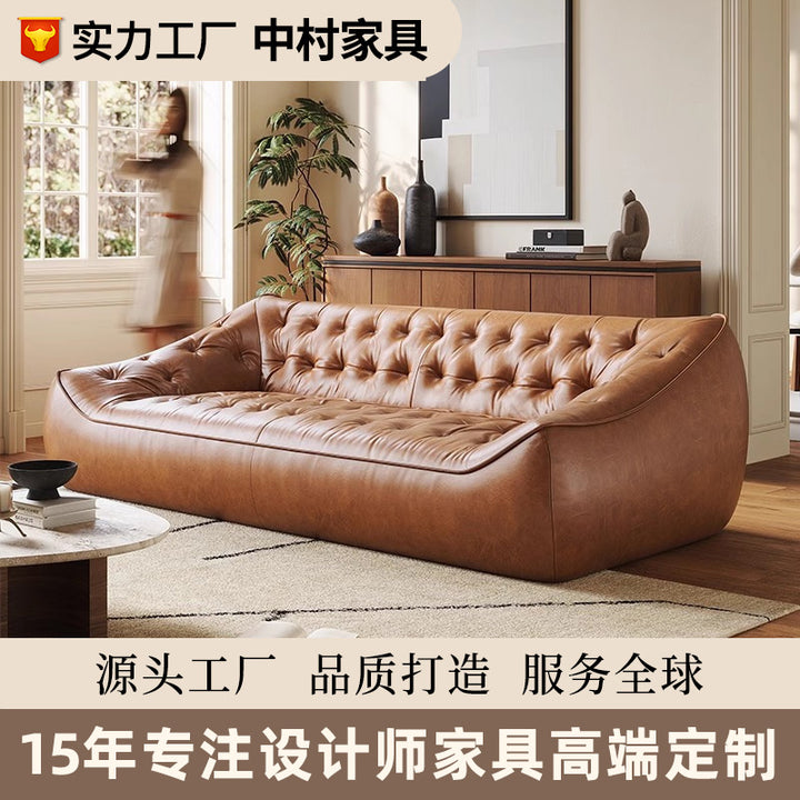 Medieval high-end oil wax leather French retro small apartment straight row full leather sofa...