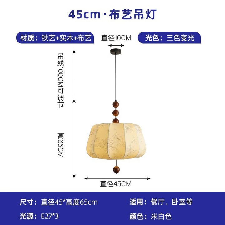 Medieval restaurant chandelier American retro master bedroom light, Japanese-style wabi-sabi wind B & B high-end fabric chandelier