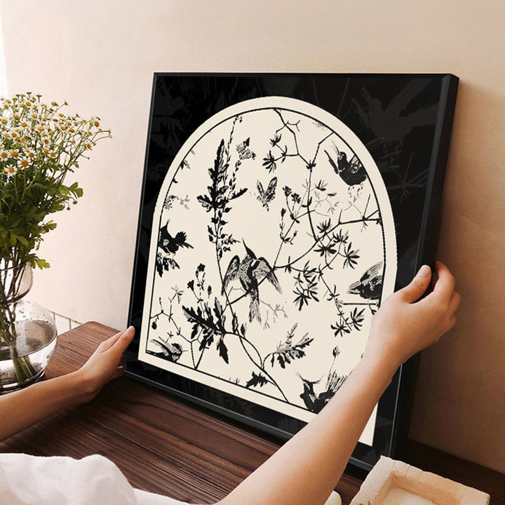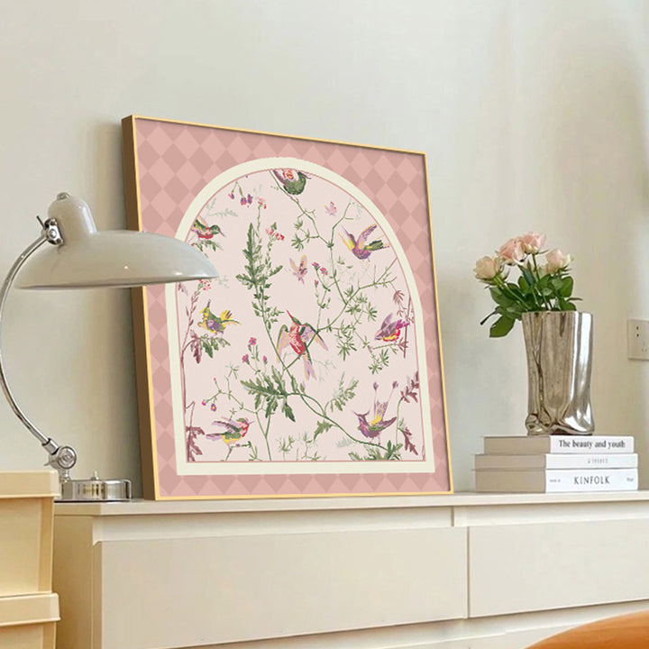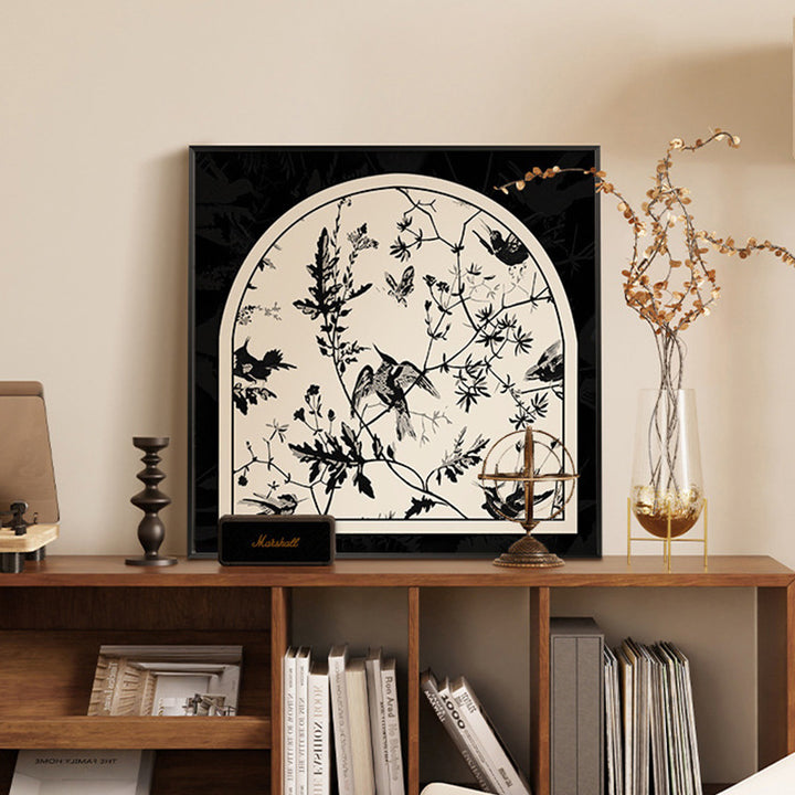 Medieval style flower and bird table painting new Chinese dining room decorative painting cre...
