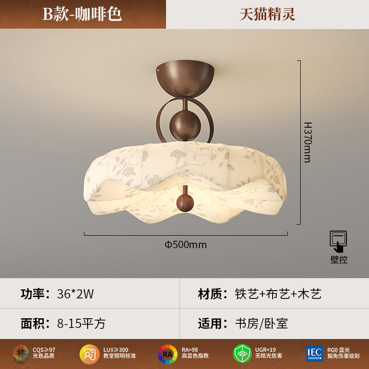 Medieval style led lamps household ceiling lamp fabric room lamp Song aesthetics full spectrum study bedroom lamp