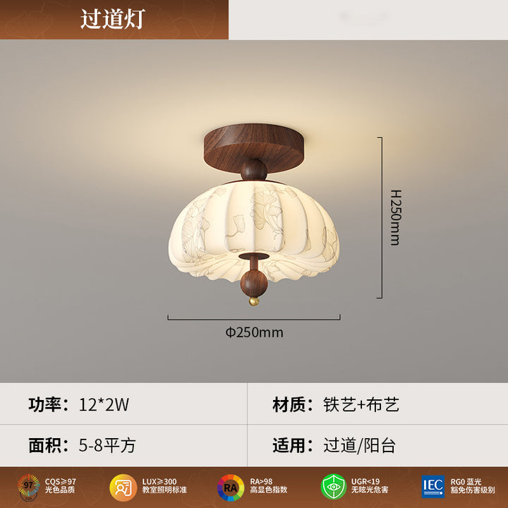 Medieval style printed fabric Song style retro bedside small chandelier 2025 new cream corridor aisle entrance lamp