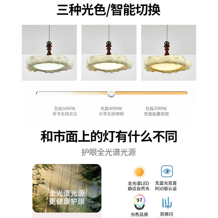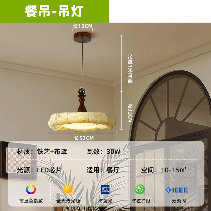 Medieval style restaurant chandelier, Nanyang style retro high-end chandelier, walnut printed fabric, new Chinese style lamps and lanterns