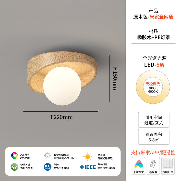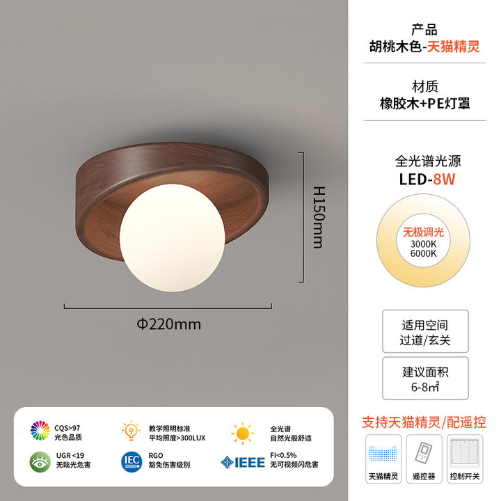 Medieval style round ball ceiling light corridor aisle light solid wood retro balcony entrance bay window light LED creative