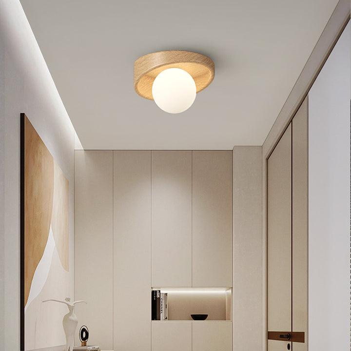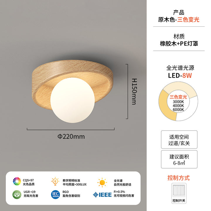 Medieval style round ball ceiling light corridor aisle light solid wood retro balcony entrance bay window light LED creative