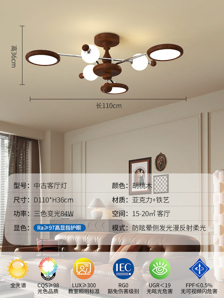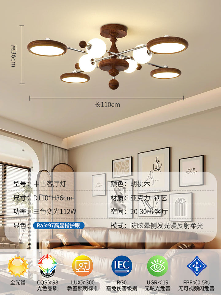 Medieval wabi-sabi wind frisbee living room main light walnut color retro atmosphere ceiling light design sense dining room bedroom light