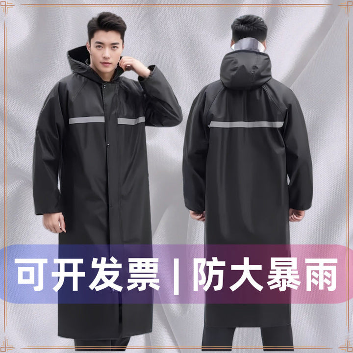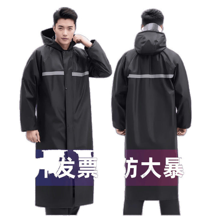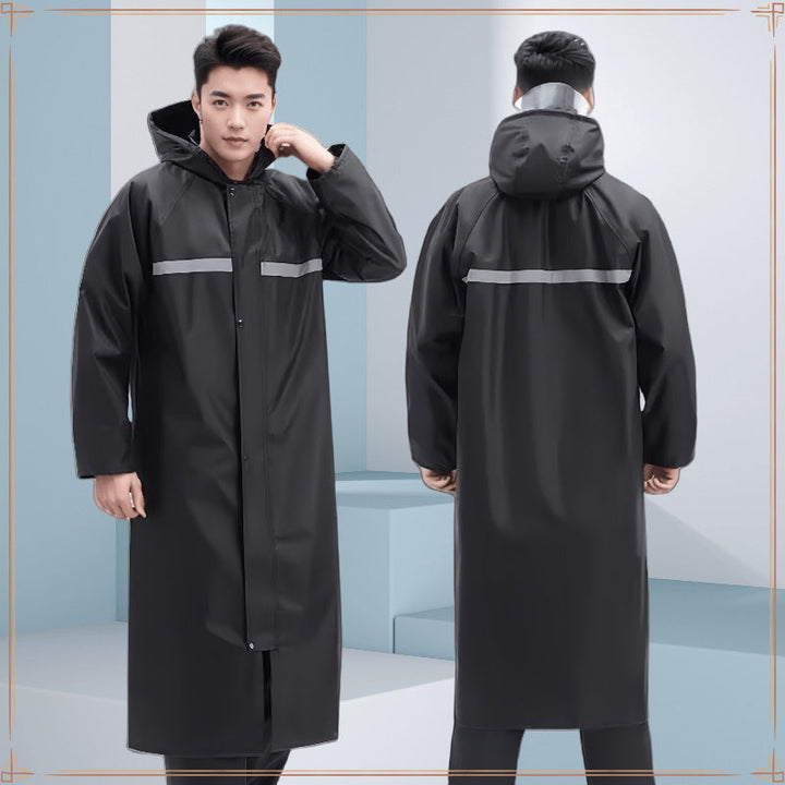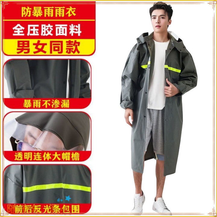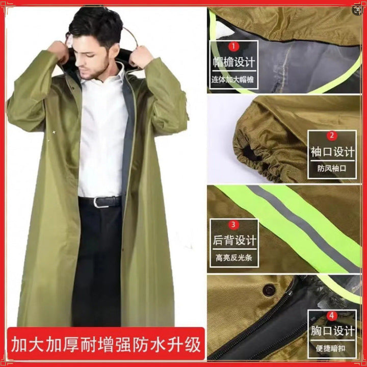 (Black) Extended trench coat in the rain [longer in the same category], (Yellow) Extended trench coat does not stick to the body without dripping water [Thicker in the same category], (Green) Extended trench coat galloping in the wind and rain [Stronger in the same category] |