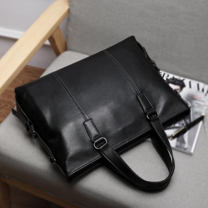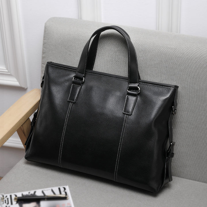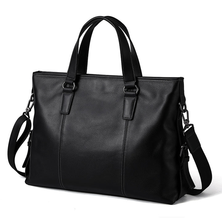Men's bag leather men's casual handbag first layer cowhide computer bag 14 inch business brie...